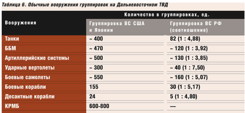 «Проведя сравнение сил и средств на Дальнем Востоке, мы видим явное превосходство Японии. По материалам открытой печати, на Дальневосточном ТВД у нас 25 подводных лодок, 10 боевых кораблей океанской морской зоны и 32 прибрежной. У Японии 66 кораблей, в том числе пять эсминцев-вертолетоносцев со сплошной полетной палубой и ангаром для самолетов типа F-35B, 18 подводных лодок, из них треть — новые. В наличии 7 ракетных, 8 десантных, 25 минно-тральных катеров, 5 морских танкеров, 2 корабля управления, 2 поисково-спасательных судна, 1 минный заградитель, 3 БДК и 2 малых десантных, порядка 180 самолетов и 140 вертолетов», — привел свои данный Зайцев.