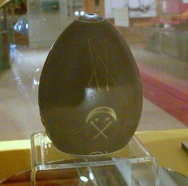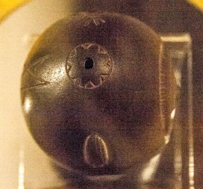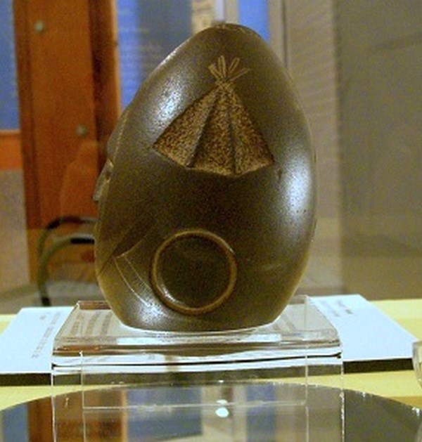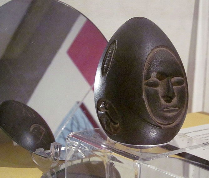 Так вот. Представьте себе тёмное каменное яйцо размерами 10 на 6,4 см, изготовленное весьма достойно из куска кварцита. Достойно по всем статьям. То есть качественно обработанная поверхность с рисунками со всех сторон, сделанными с высоким художественным вкусом в лаконичном стиле. Короче – работа мастера! Сейчас изделие пылиться на специальной подставке в экспозиции того самого Исторического Общества, которому его презентовала дочь мистера Лэдда. Его называют Мередитским камнем и про него на самом деле до сих пор не знает никто и ничего! Выглядит эта загадка вот так: