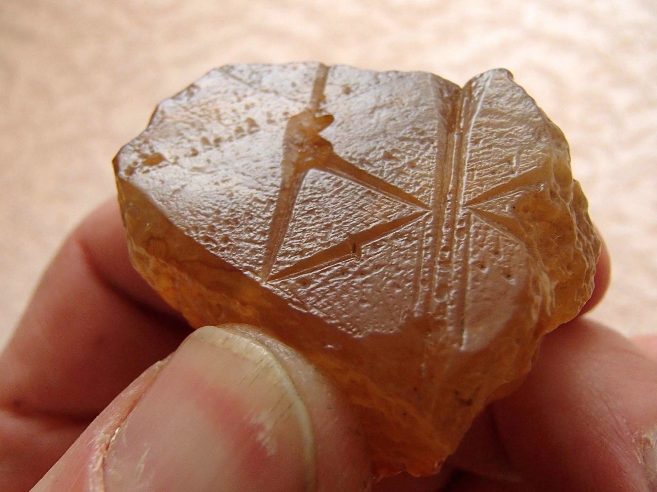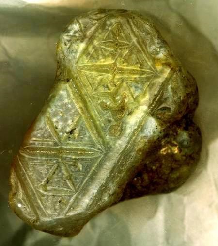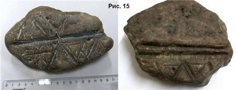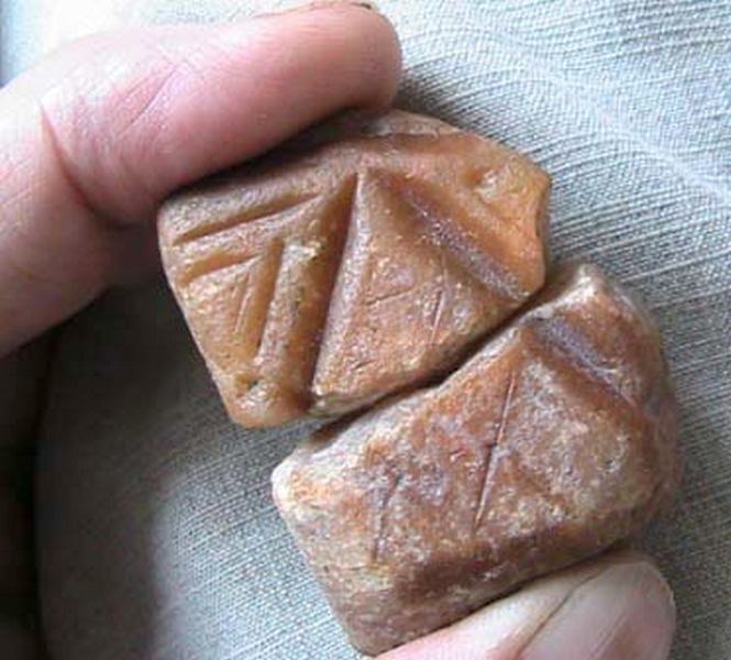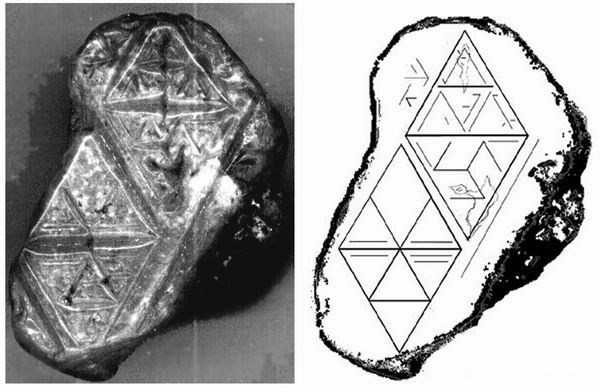 И вот однажды в Красноярском крае находят обломок этого самого халцедона, но не обычного, а с одной полированной гранью, а на ней странные резы, образующие геометрический узор: