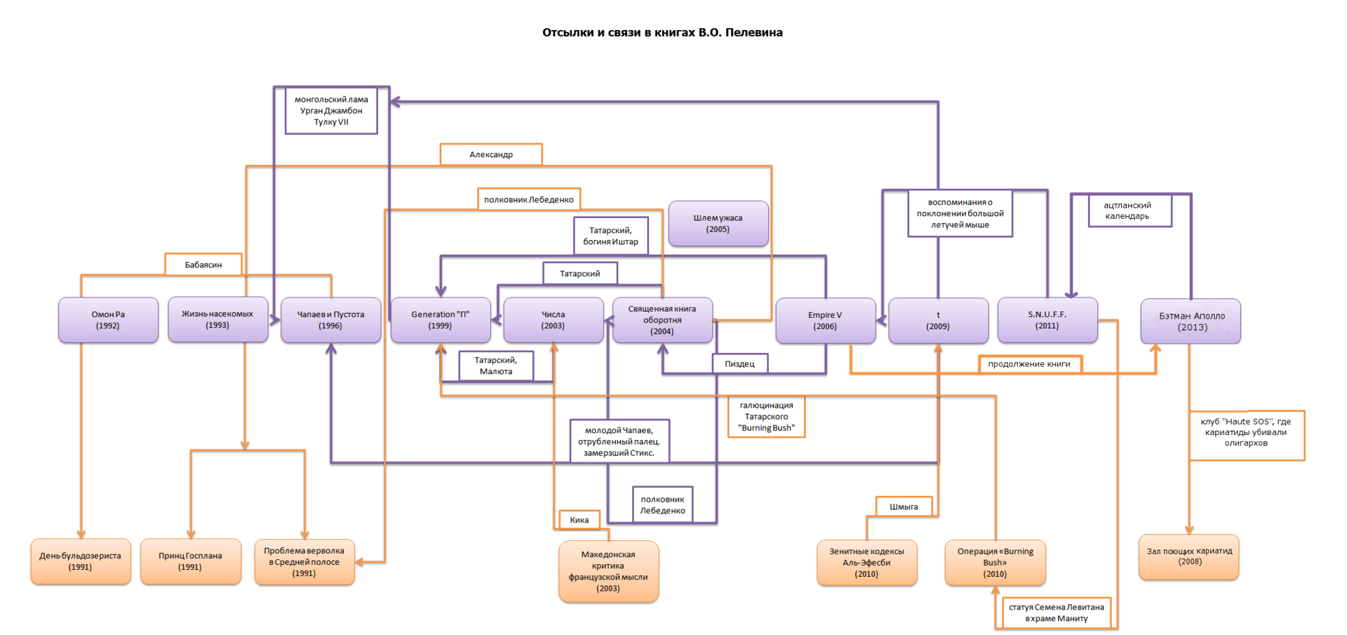 это видно уже на рисунке 2013-го года, и с тех пор мир пелевина продолжал усложняться.