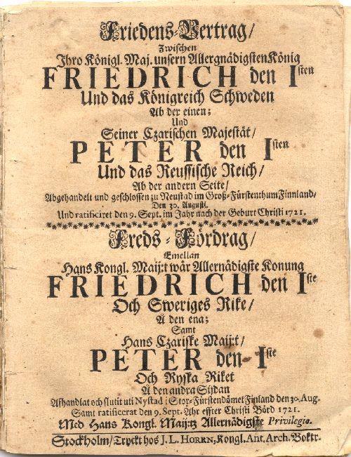 Продолжая формировать историческую базу, нельзя не упомянуть Петра Первого, выкупившие эти земли у шведов, вместе со всей живностью и всем населением, а также их потомством. Речь идет о Ништадтском мирном договоре, который завершил Северную войну между Россией и Швецией. Согласно ему участок Карелии, Эстляндия, Ингерманландия и Лифляндия отошли Петру I за 2 млн. ефимков (серебряных монет) – это почти 56 тонн серебра.