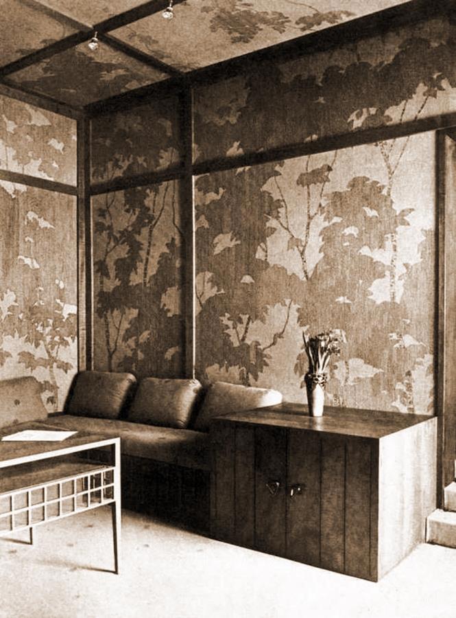 Или вот предельно простая чайная комната Коровина, словно попавшая в прошлое со страниц журналов 1950х годов... А распределенный свет на потолке - ну точно современный!