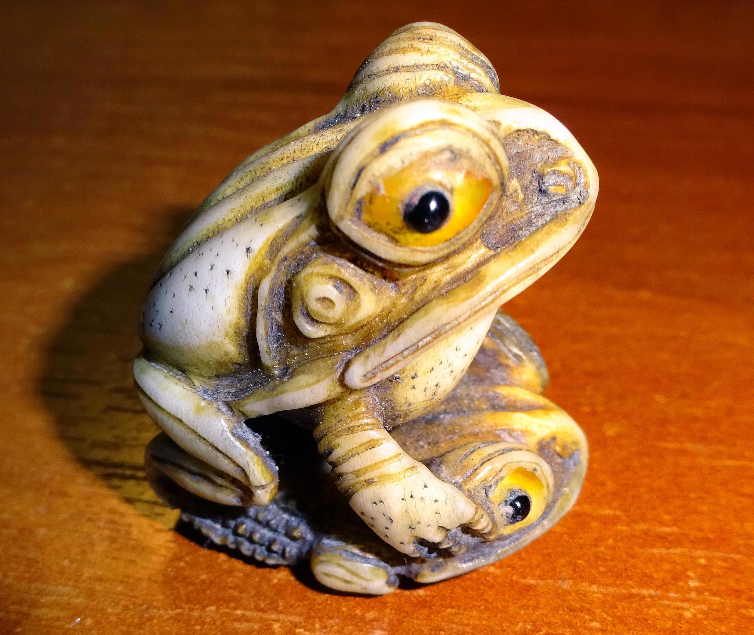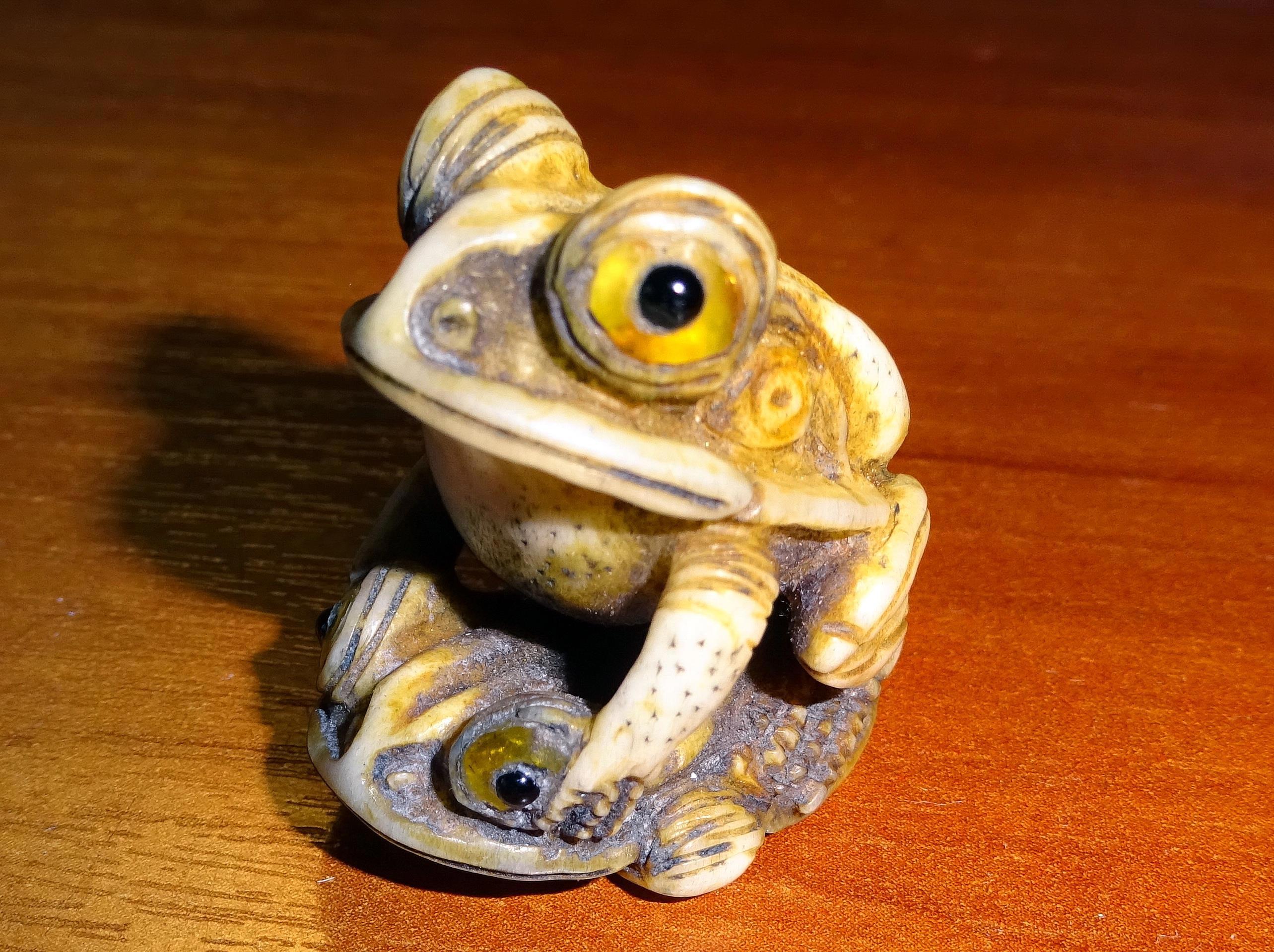 Автор: VadУ меня на полке потихоньку собирается коллекция жабочек. Каждую из них подарил интереснейший человек, за каждой фигуркой своя история. Как-нибудь закончу справочник, напьюсь и напишу детскую книжку, под условным названием "Лигушечкины рассказы". Именно так, через "и". И от имени каждой лягушечки будет своя история о том человеке, который ее подарил. А сегодня, разрешите представить: жабочка от мастера, Сергея Макаренкова из Москвы. Он режет из клыка моржа и лосиного рога, вот такие чудесные фигурки.