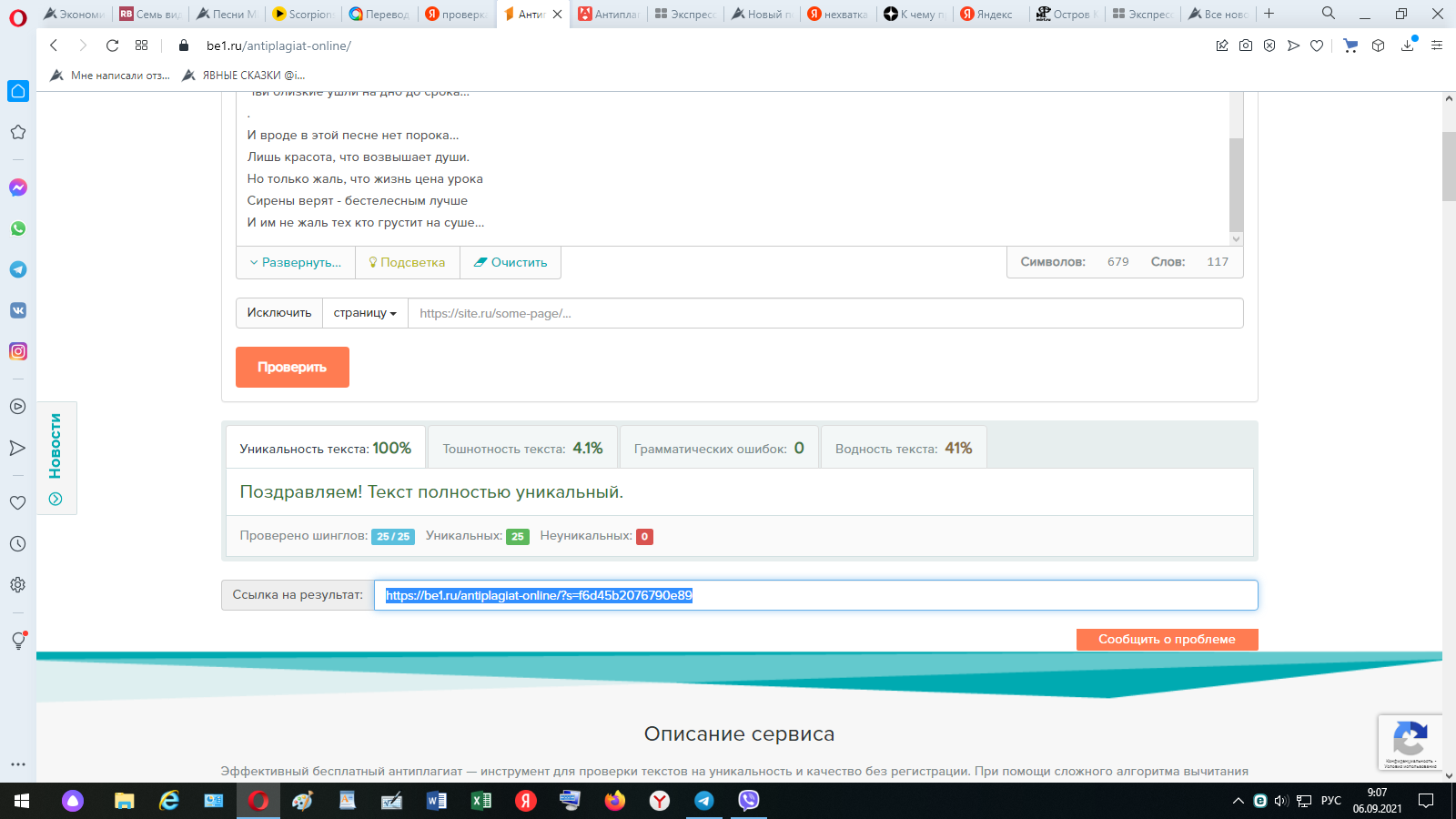 Ну и прежде, чем выкладывать решила проверить текст на уникальность "антиплагиатом"...