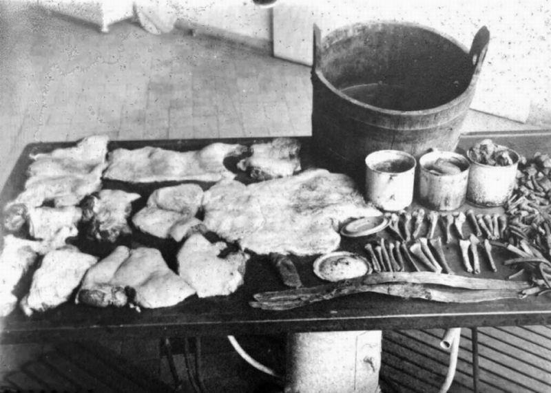 В сарае, принадлежавшем Ленке, нашли целую груду человеческих костей, тщательно очищенных от сухожилий, мышц и т. п. По-видимому, кости раньше варились. Принадлежали они не менее, чем трем людям.