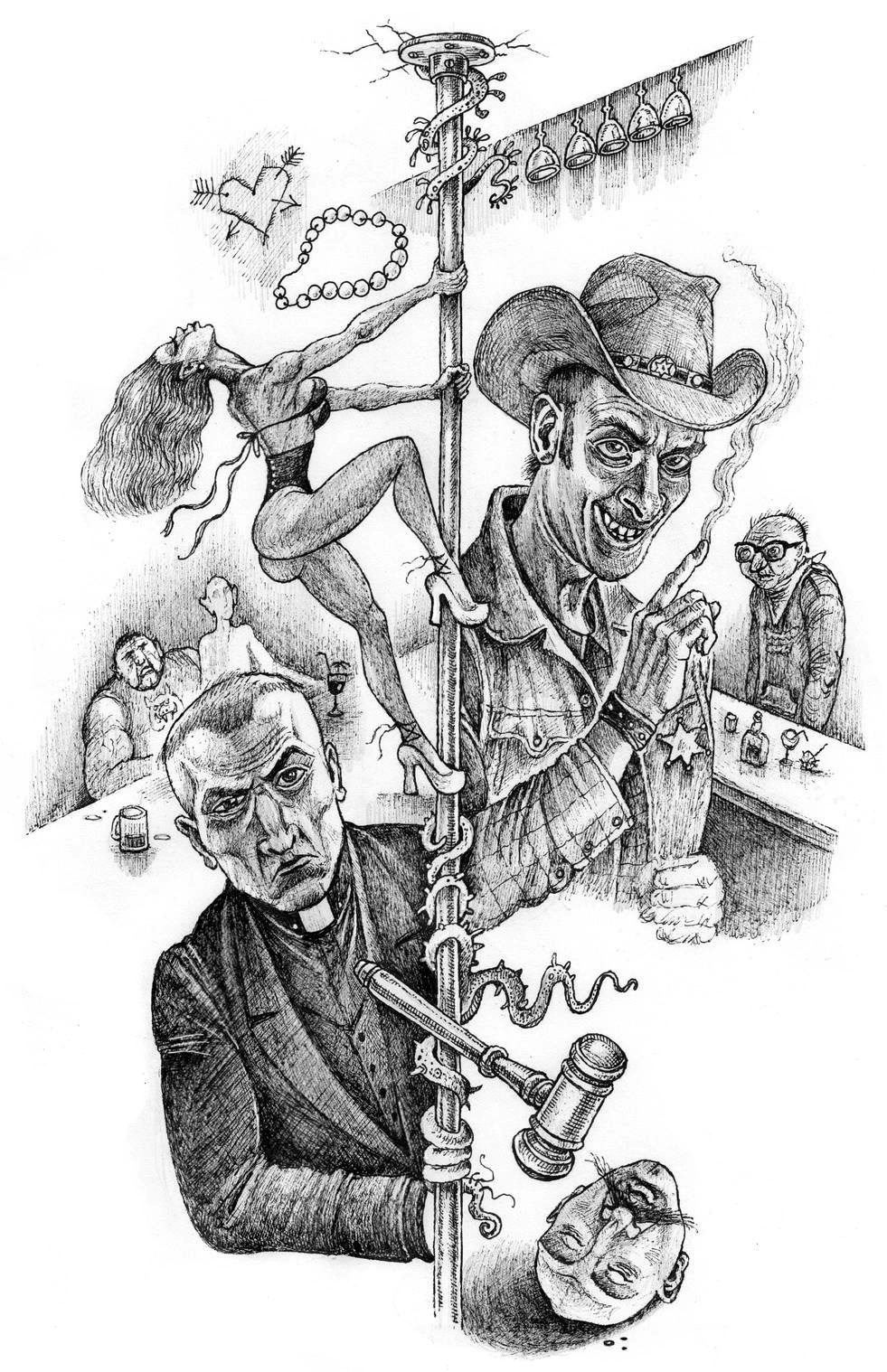 И вот замечательный художник Иван Иванов, иллюстрировавший ранее Евгения Лукина, Николая Гоголя, Даниэля Клугера, нарисовал цикл иллюстраций к моему циклу. Показываю вам иллюстрацию к рассказу "Ишибаши". На рисунке главные герои - преподобный Крейн и шериф Ник Красавчег.