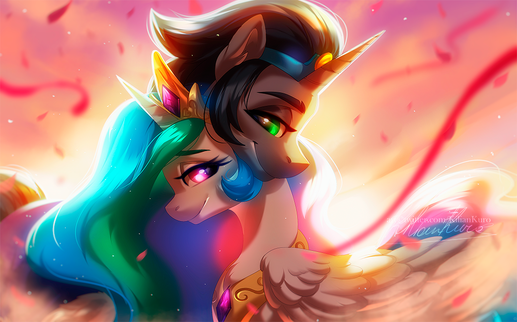 — Я давно ждала, хоть и боялась тебя потерять, — закрыв глаза, Селестия потёрлась своей мордашкой о морду Сомбры. — Но всё же надеялась. И вот, наконец, ты пришел. Я знала, что ты придёшь... Но на этот раз я хочу быть рядом с тобой всегда и везде. Пусть наша любовь будет такой же сильной, как вера Твайлайт Спаркл в магию Дружбы.