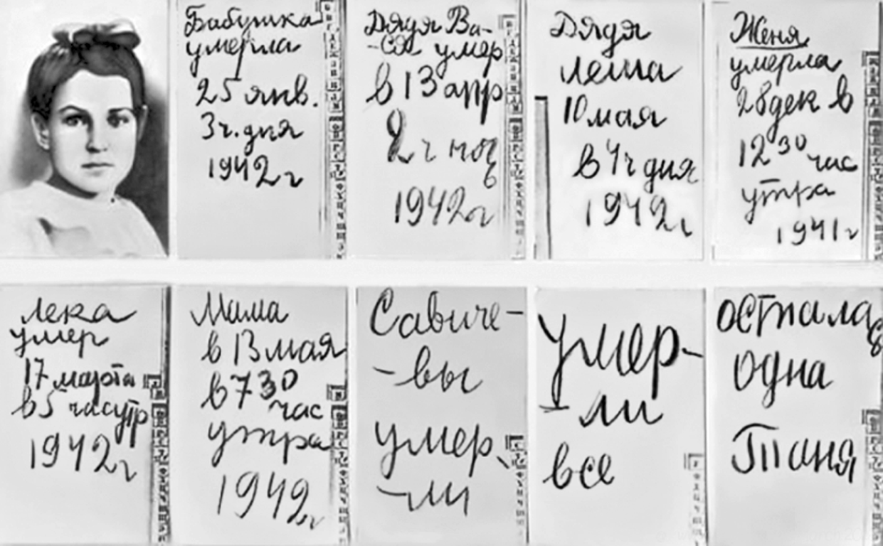 Дневники вели многие школьники осажденного Ленинграда. Дневник Тани Савичевой получил наибольшую известность. Пронзительные строки звучат, как приговор нацистским нелюдям.