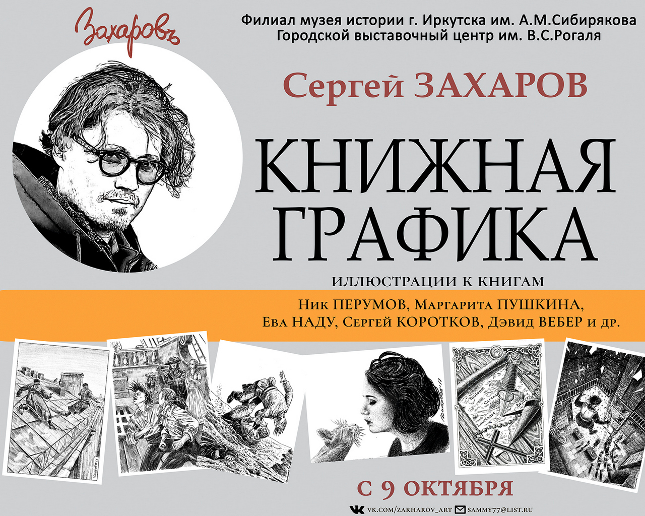 В общем, 9 октября в Иркутске в доме-музее им. В. С. Рогаля начнется моя ПЕРСОНАЛЬНАЯ ВЫСТАВКА. Под оригинальным названием "КНИЖНАЯ ГРАФИКА"))). На выставке будут представлены порядка 200 рисунков для книг Ника ПЕРУМОВА, Маргариты ПУШКИНОЙ, Дэвида ВЕБЕРА, Евы НАДУ, Сергея КОРОТКОВА, РЕЙНМАСТЕР, Анны ЯСЕЛЬМАН, Владимир ВЕНГЛОВСКОГО, Елены ЩЕТИНИНОЙДмитрия САМОХИНА и др.