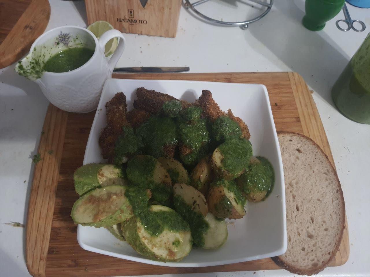 Типа встречайте, печеные хрустящие куриные крылья, печеная картошка и печеные кабачки. Под мятным соусом.