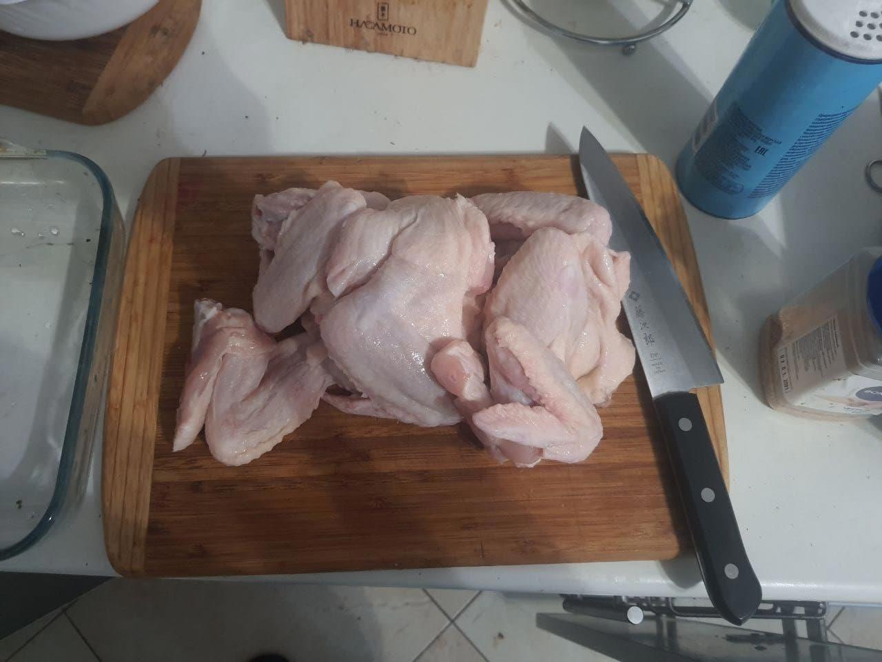 Берем курицу. У меня крылья, но с тем же успехом можно использовать и голени и филеху. Главное соблюсти технологию.