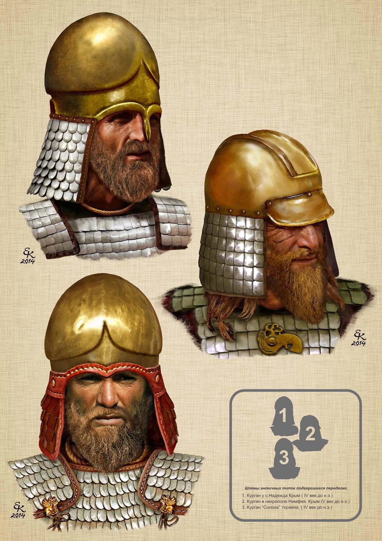 Автор: Николай БергБыли у греков странноватые коринфские ЕМНИП шлемы. Которые по ряду данных потом в обрезанном виде юзались скифами.