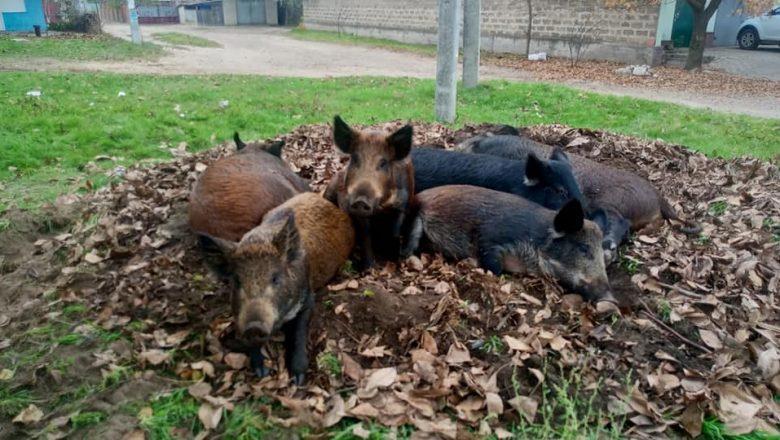 Кабаны в родной среде обитания, в гаражном кооперативе.