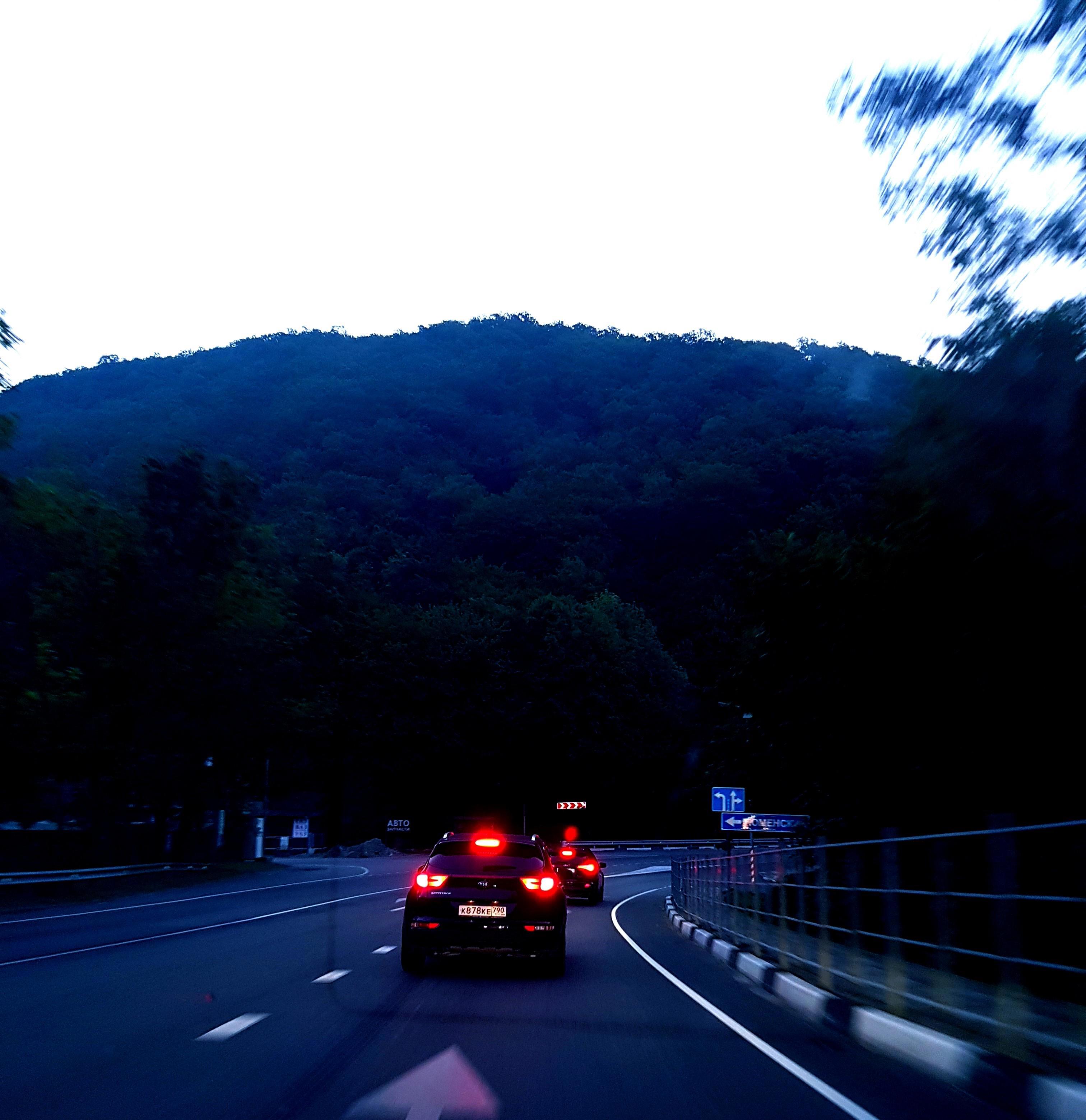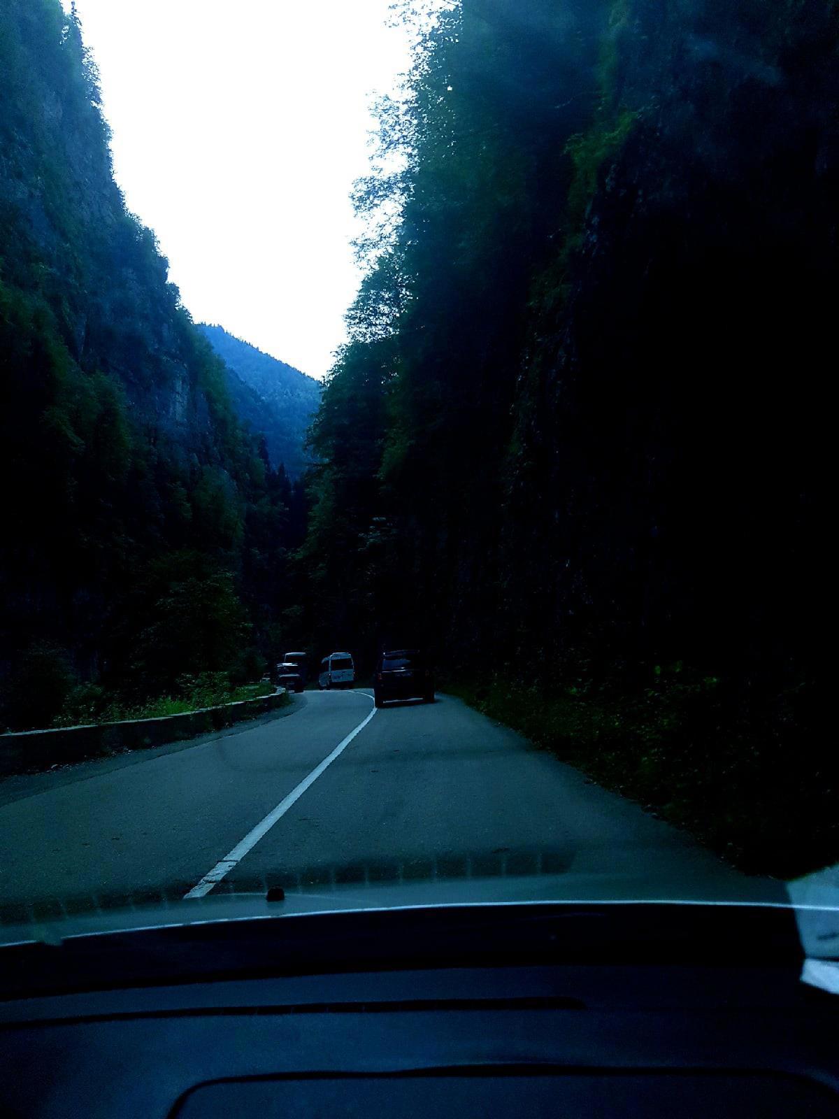 Ближе к вечеру ехать становилось всё труднее, от палящего солнца кондёр не сильно спасал, да и усталость давала о себе знать. Не выдержав, поздно вечером остановись в какой-то глухомани близ Краснодарского края и улеглись спать. Пока мы спали, Вадим (парень сестры) заботливо охранял нас от бродячих собак и бомжей. Проснулись под утро и снова в дорогу, до Сочи оставались считанные часы. Кстати, до поездки, многие нас пугали серпантином, мол, страшно, опасно, такие крутые повороты и т.д, но ничего страшного мы не заметили, наоборот после Джубги двигаться стало веселей, крутые повороты захватывали дух, как и очертания гор в темноте. Никогда прежде я не видела гор и представить себе не могла, что в России есть настолько красивые места. Я радовалась как ребёнок, настолько дорога была атмосферной. Видя такой пейзаж за окном, я вдруг поняла, что особо не жила до этого момента. Трудно описать нахлынувшие чувства. Не дыша, я прилипла к окну, очарованная поднимающимся на горы рассветом с одной стороны, а с другой — морем, видневшимся через редкие деревья. Мы ехали почти в полной тишине, только я изредка мычала что-то нечленораздельное от бури эмоций.
