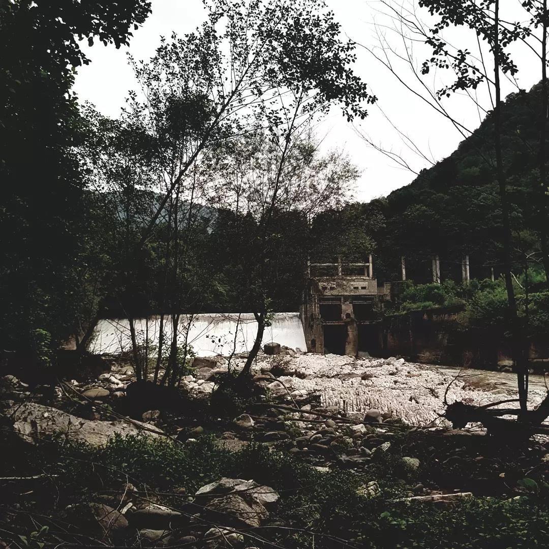 Времени у нас было в обрез, до наступления темноты оставалось чуть больше часа. Так что решили устроить экскурсию на ГРЭС. Наученные горьким опытом, оставили машину там, где дорога поплохела и пошли на шум водопада. По пути нам встретились дети, пинавшие мяч возле пооблупившегося фонтана; место довольно жуткое, огромный домище в полутьме казался угрожающим, деревья смыкались над головой, злобная шавка заливалась отвратительным лаем. Мы постарались чуть ли не бегом пройти мимо, не делая остановки для фото.