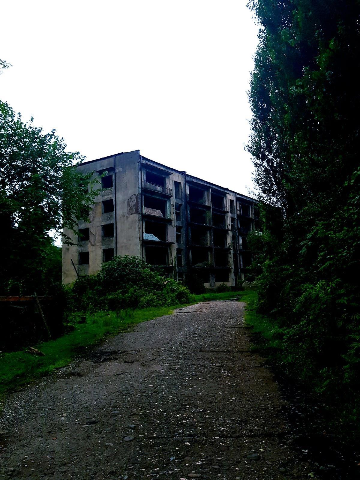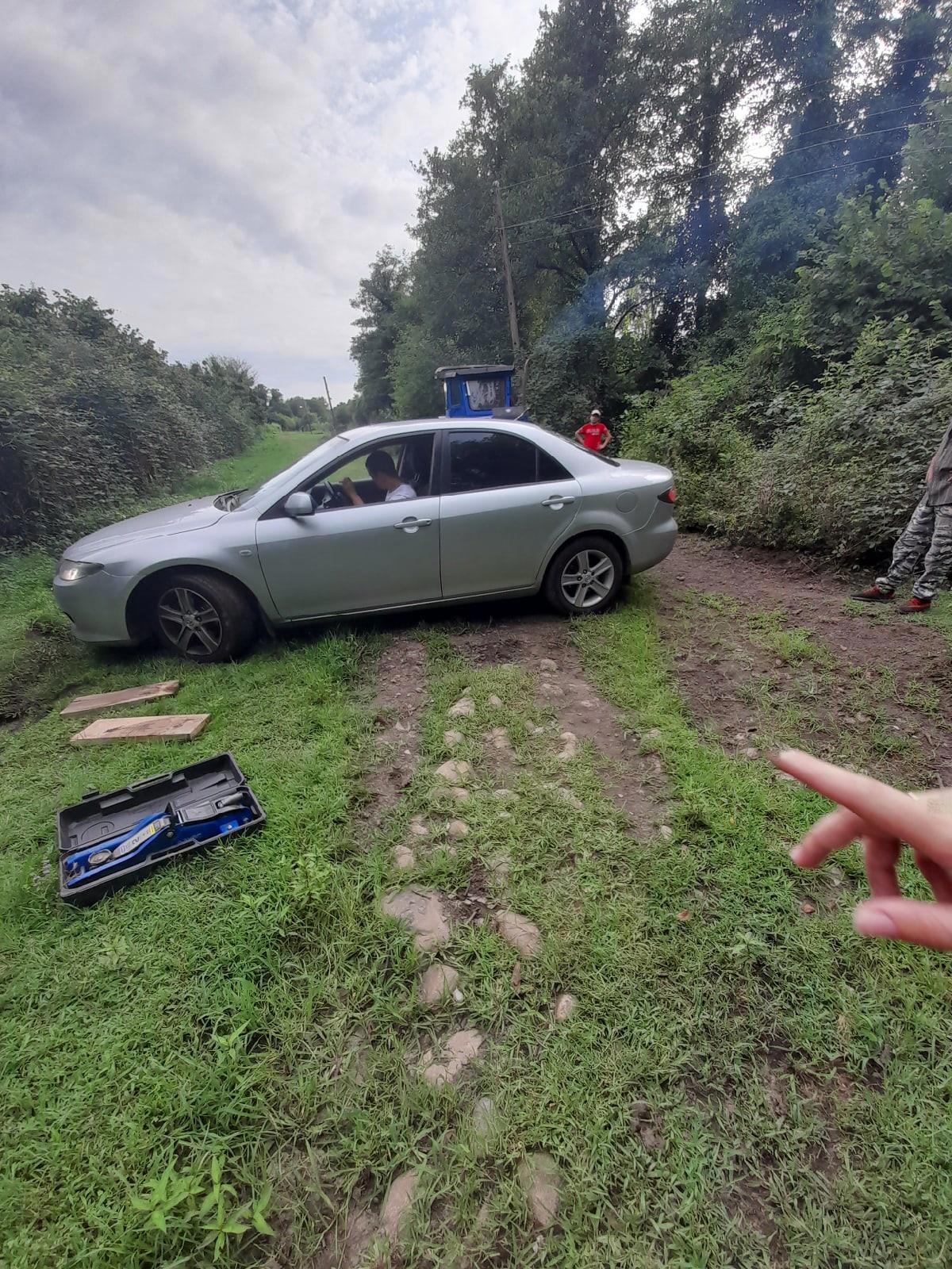 Как выяснилось — приехали мы не туда, куда надо. Навигатор завёл нас в богом забытое село, в котором попросту отсутствует дорога. Мы чудом проехали по бездорожью в самый центр села и заброшенного города не увидели. Ещё позже выяснилось, что я неправильно забила название города в навигатор и теперь ношу гордое звание "Сусанин года". До города мы не доехали 10 километров. Проложили правильный маршрут и только было двинулись в путь — машина застряла при развороте, попав в колею, незаметную с первого взгляда. Пробовали с толкача, вытягивать веревкой — ноль результата. Подложить доски не представлялось возможным, если бы не было домкрата. У нас он к счастью был, чем мы и воспользовались. Радость быстро прошла, выехать не удалось, колеса слетели с досок при выезде, и машина ещё основательнее осела в колее, бампер смялся чуть ли не в гармошку. Паника захлестнула всех моих личностей — так жестко я еще никогда не косячила и не представляла, на что нужно пойти, чтобы искупить свою вину. Сестры и муж сохраняли спокойствие, пока у меня в голове проносились тысячи сценариев нашей гибели. Обычно фильмы ужасов так и начинаются — кучка туристов застревает в глуши, где ни души и начинается техасская резня бензопилой, в нашем случае — абхазская.