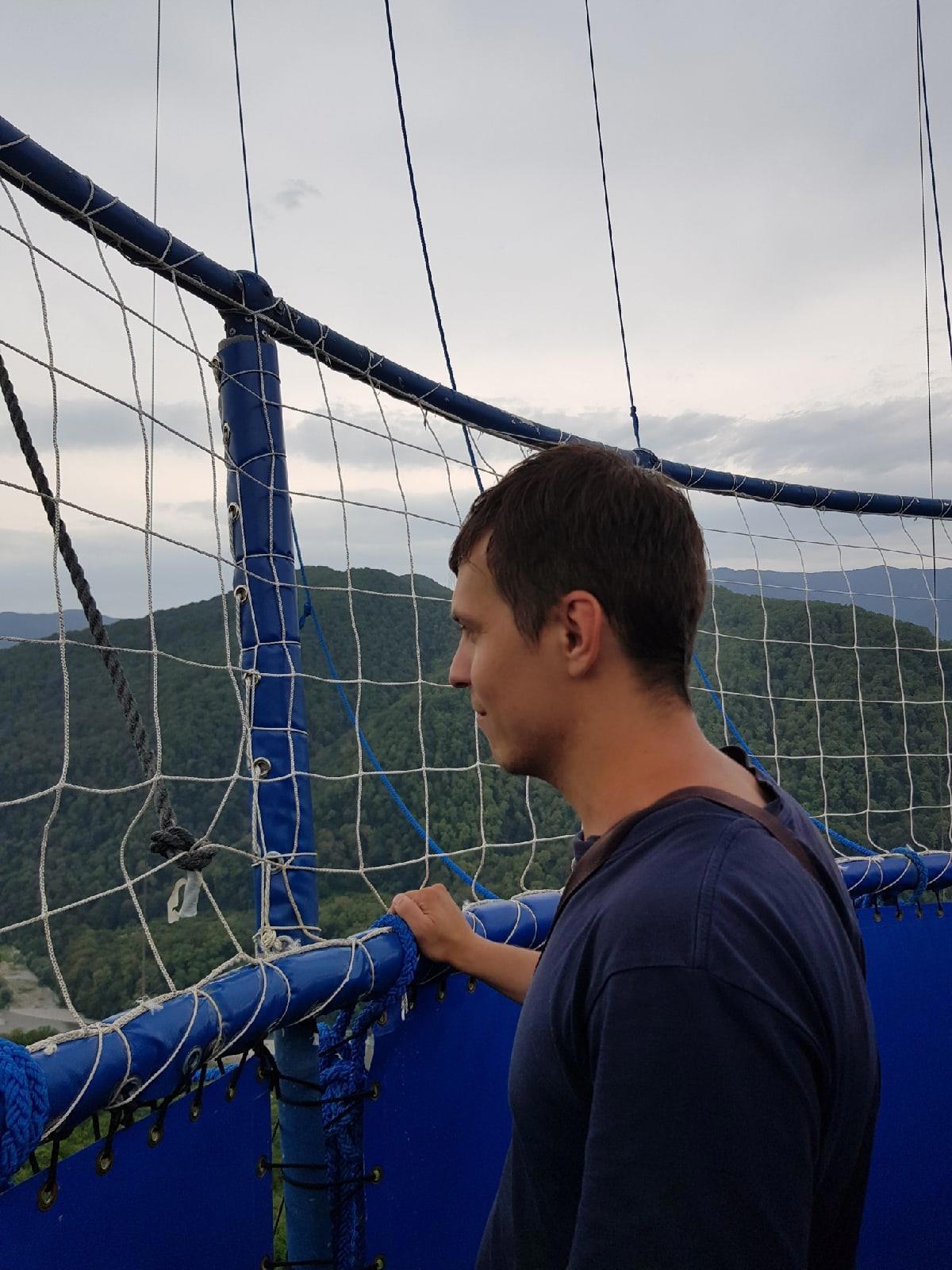 Подъём на шаре получился идеальным. Нам повезло — мы поднимались в одиночестве, поэтому в полной мере смогли ощутить всю прекрасность момента. Корзина у шара огромная, по ней можно было передвигаться, как угодно. Так что несмотря на некоторые шероховатости, все-таки сюрприз удался. А Ира с Вадимом решили пощекотать нервы и выбрали зиплайн. Не покривлю душой если скажу, что её крики разносились по всему Кавказу