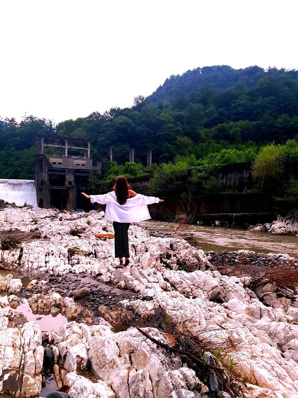 Дошли до ГРЭС. Там закрыто наглухо. Пошли назад. Я всё боялась за сохранность машины, но всё обошлось. Уже хотели сесть и уехать, как вдруг из-за поворота показался уазик 3-мя то ли абхазцами, то ли кавказцами. Вежливо поинтересовалась, куда мы направляемся. Мы объяснили, мол, так и так, Грэс хотели посмотреть, а там закрыто. Добрые дяди тут же показали нам тропинку, ведущую к ней, и пожелали счастливого пути.