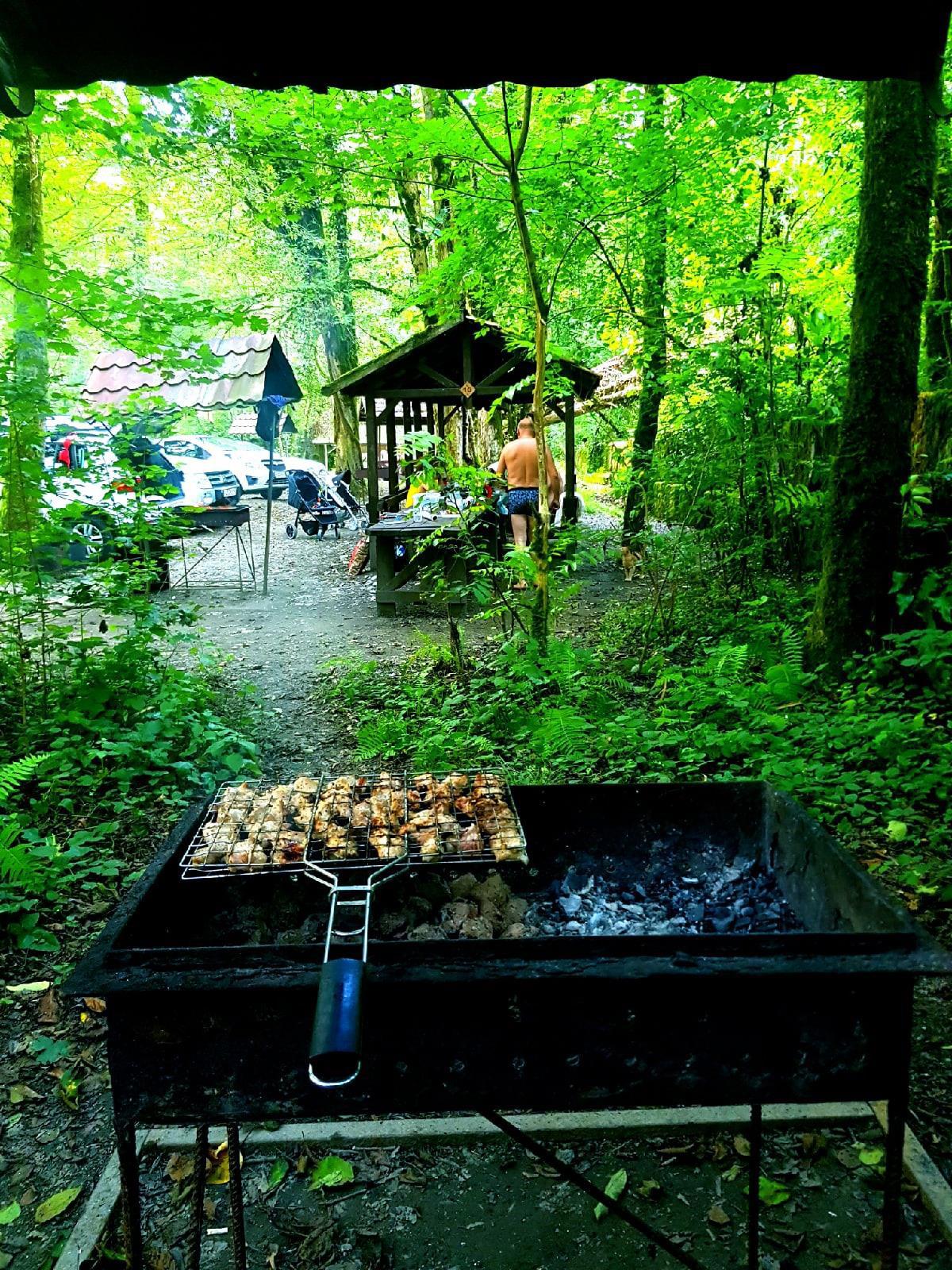 . Возле мангала нас уже ждал сюрприз: угли, розжиг и даже скатерть в беседке была накрыта, вот это сервис.