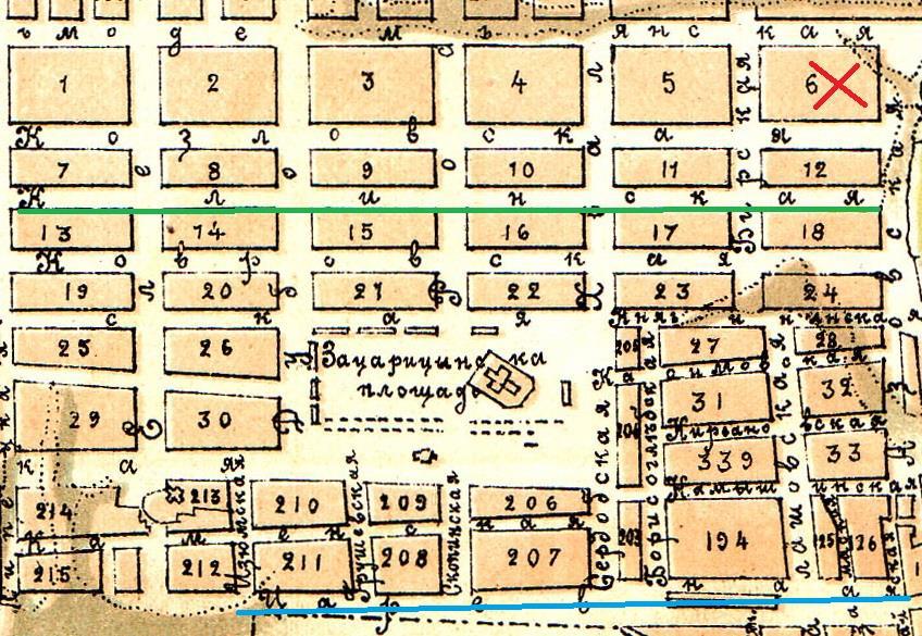 Итак, снова "в центре города" - то есть, вполне вероятно, в районе улиц Ленина и Пушкина, но никак не за Царицей! То есть, это именно бывшая фабрика Лапшина, а не Серебряковых или Родионова, которые находились как раз за Царицей: