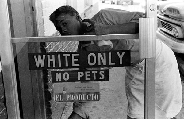 Надпись: Только для белых. Не для животных.