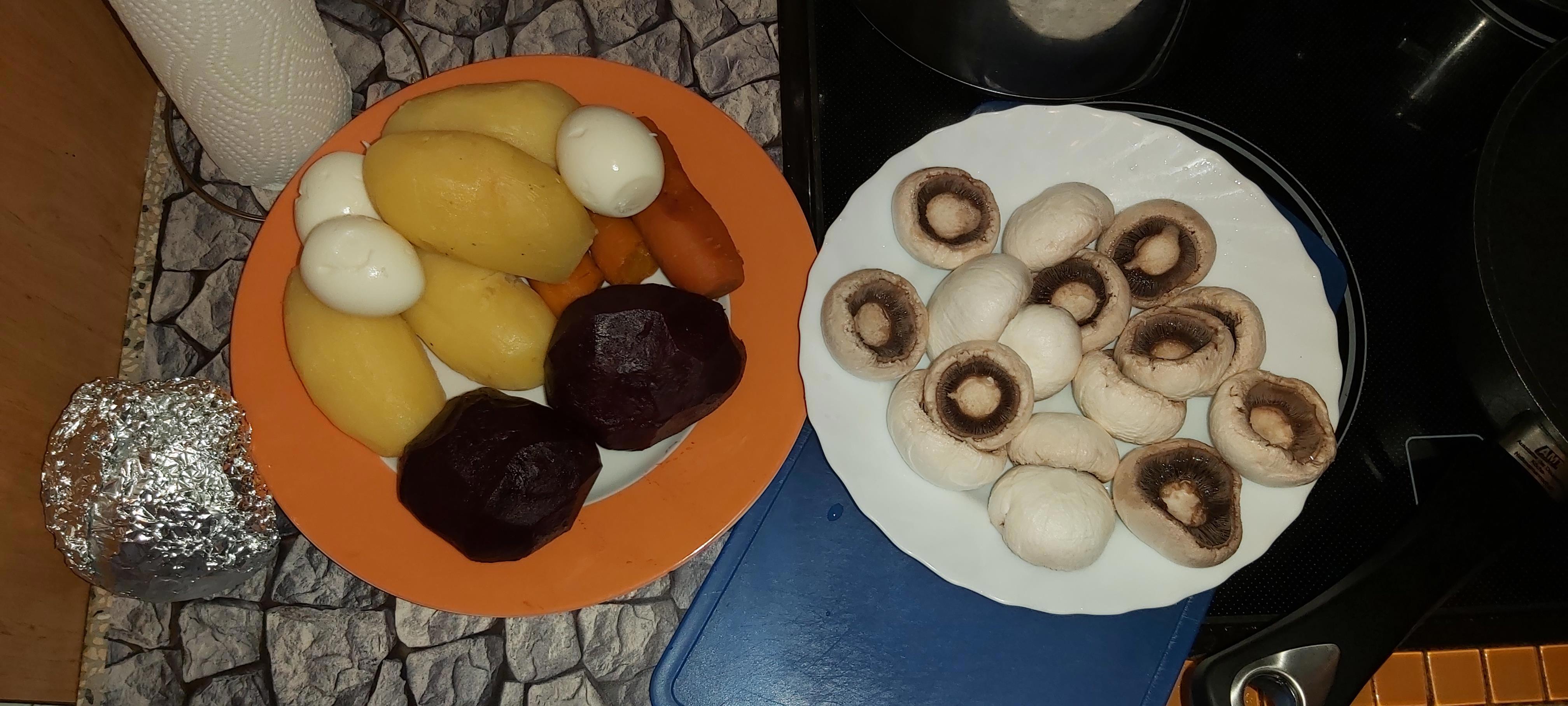 Вчера сварила картоху, марковку, свёклу, куру, яйки.