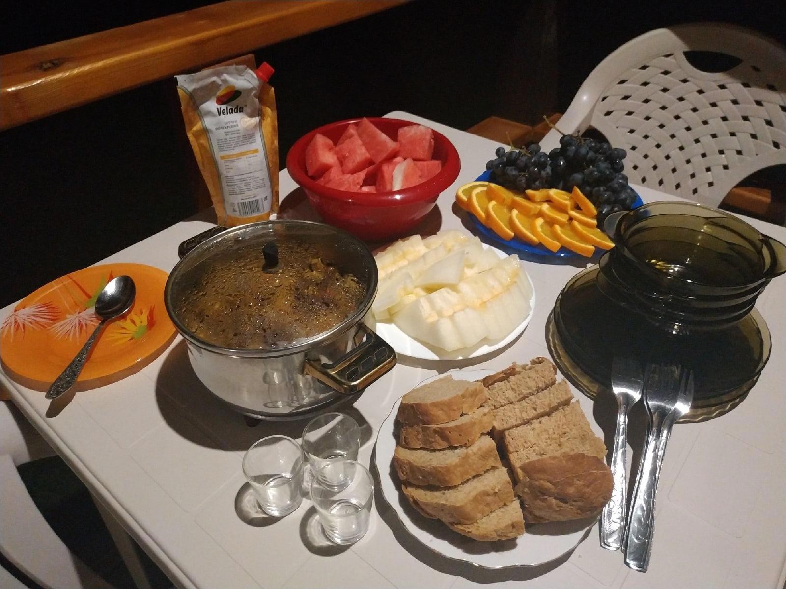 А завершилось всё ночным пиршеством! Потому что и мы привезли много еды, и с хозяйской стороны нас тоже ждал сытный приём. Было вкусно и весело. Смеялись, вспоминали прошлое, травили байки. Хорошо было!