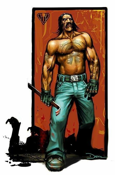 Вот например Денни Трехо (да, да тот самый страшный мексиканец с мачете) родился в 1944 году в городе Ангелов. Вся родня мальчика исключительно жила по понятиям и без пистолета из дома вообще не выходила. Его родной дядя (хотя у него их было аж шестеро) с раннего детства приучил племянника помогать ему в его ... "бизнесе". К четырнадцати годам у мальчика имелась уже дюжина приводов в полицию и тело покрытое татуировками и шрамами (была здесь и парочка пулевых отверстий). Спустя несколько лет Денни, в том момент уже основательно сидевший на наркотиках, попался на очередном преступлении - разбое (т.е. насильственное хищение чужого имущества с применением оружия). Сел юноша сразу на 12 лет (ну а как вы хотите рецидивист не абы как) и отбыл свой срок от звонка до звонка. Как не странно тюрьма не убила парня, а повлияла на Трехо положительно. За решёткой он избавился от наркозависимости, получил образование и постоянно упражнялся боксом, который всегда очень любил. Кстати позднее он станет чемпионом по этому виду спорта в штате Пенсильвания.