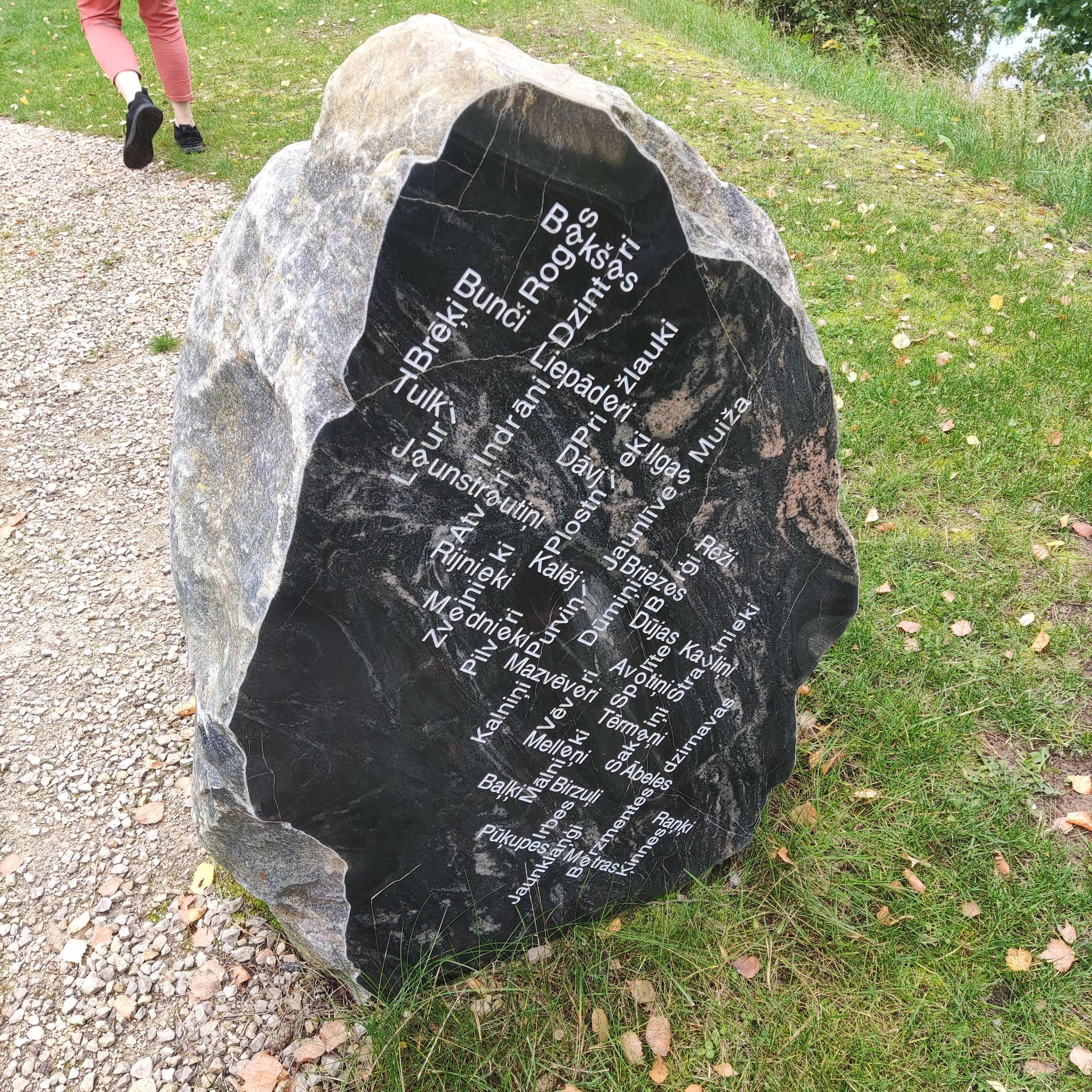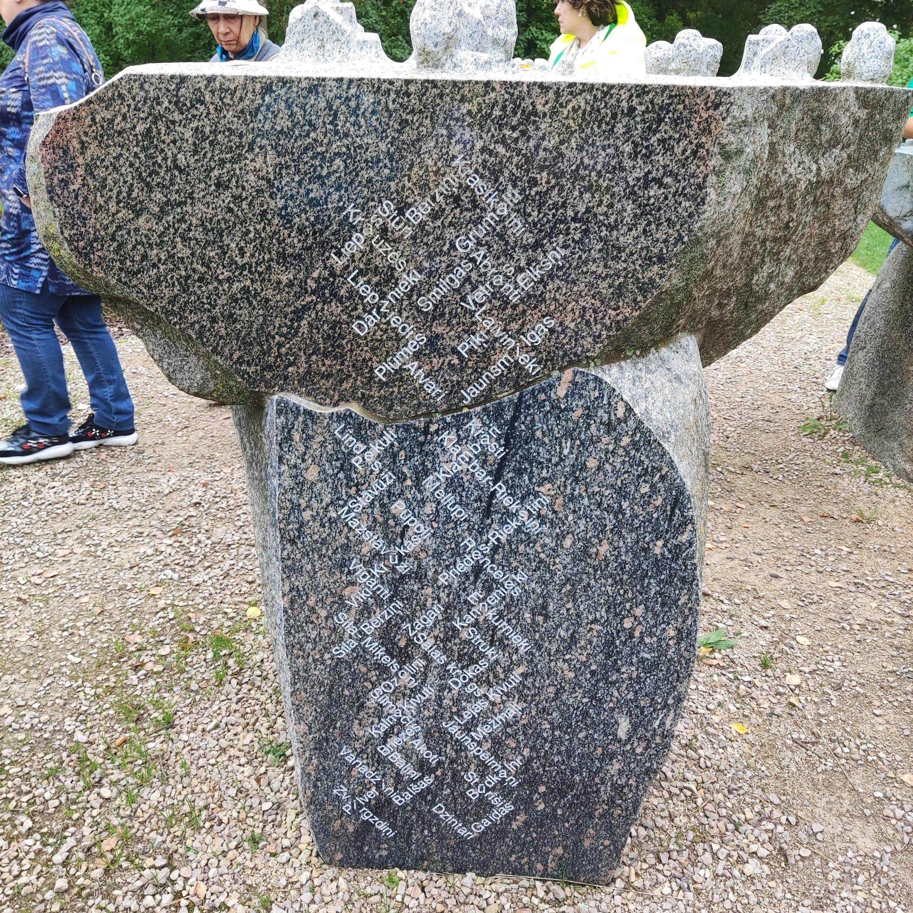 Но вот факт, что прибрежные жители должны были САМИ разрушить свои дома и уйти (да, деньги им выплатили), меня поразил! Это же не просто смена места жительства, это же смена образа жизни. Ведь все было связано с промыслом, так или иначе. Или ты рыбу ловишь, или ее обрабатываешь, или создаешь эти самые сети, лодки и т.д. И это все пришлось сломать и бросить. Больно... Но латыши - народ очень эстетичный. Поэтому они вот так запечатлели память о каждой семье, покинувшей этот берег. Это все фамилии людей, вынужденных уехать.