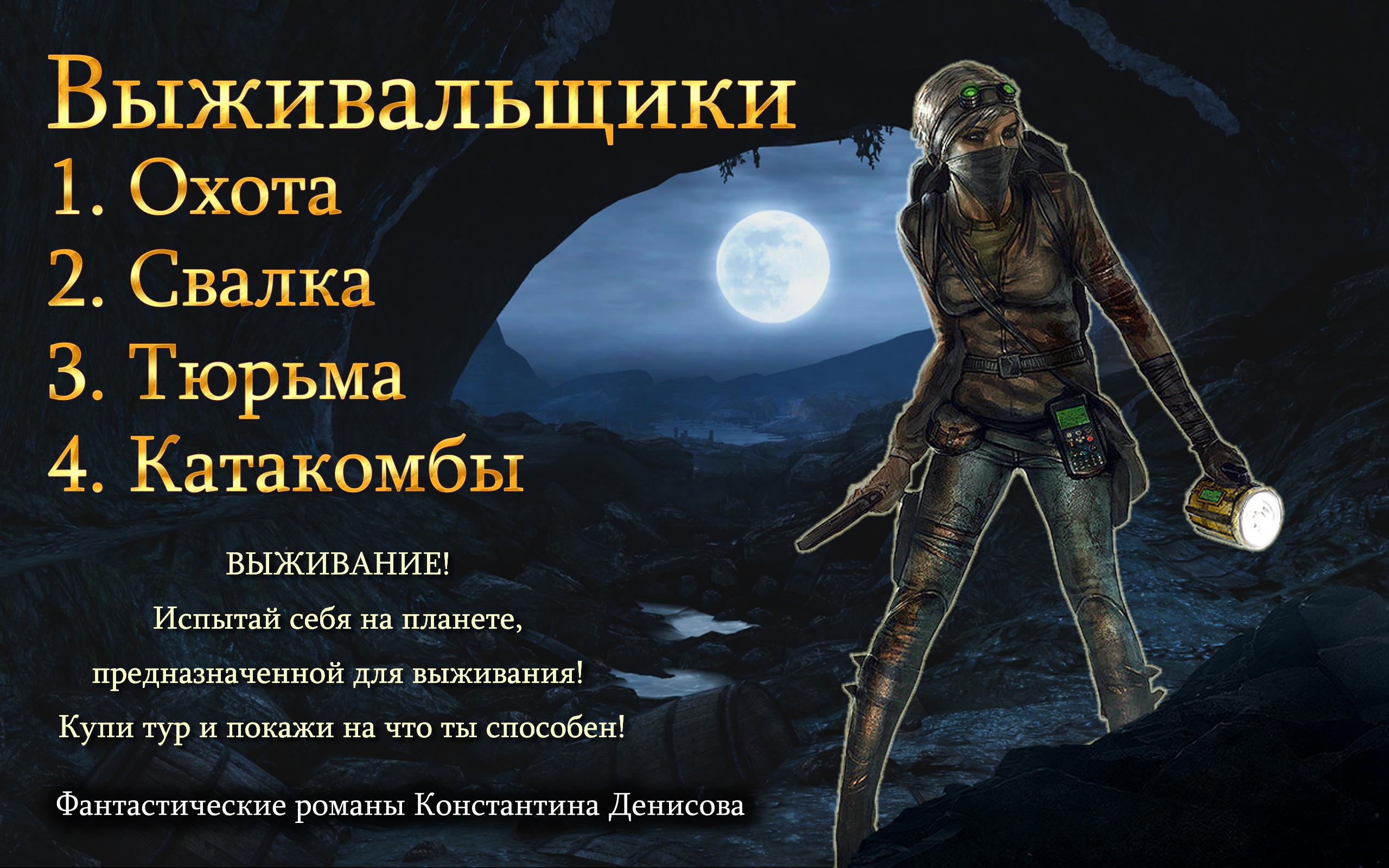 Автор: Константин Денисов Для тех, кто ждал - хорошая новость! Началась публикация четвёртой части цикла "Выживальщики" - "Выживальщики 4. Катакомбы". Думаю, что выкладка пойдёт быстрее, чем была у третьей части (лето, отпуск, море и всё такое), скорее всего три раза в неделю. Пока что склоняюсь к графику: вторник, четверг и воскресенье. Ещё я решил сместить время публикации на раннее утро, попробую. Хотя, читатели уже отозвались, говорят так лучше.