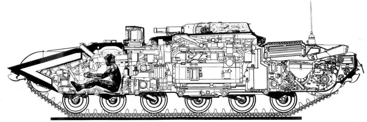 Поняли здесь чего-нибудь? Я, честно сказать, понял только то, что весь танк – это склад для боеприпасов, кроме отсека для двигателя в корме. Сидушки для экипажа примыкают к переборке машинного отделения… кажется. Может поэтому и не пошёл он в серию – ездить на бочке с порохом в тесноте не очень комфортно.