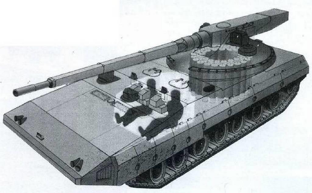 Но и, опять же, это всё же был шаг назад на пути к «Армате». Ведь никакой бронекапсулы для экипажа здесь не было. Посмотрите на схемку: