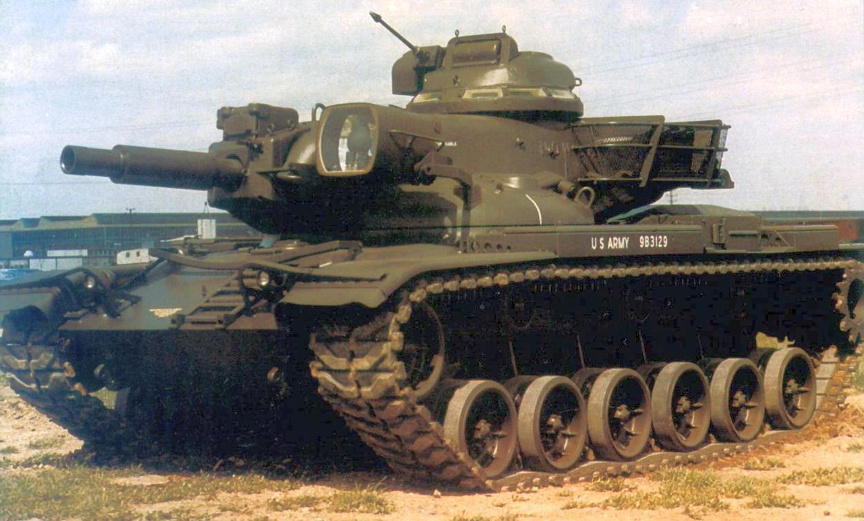 Видите, какой он низкий? Прямо не танк, а «Порш» какой-то. Это, значит, задумка была какая… приезжает, это NATO в СССР. Едут по нашему автобану, и вдруг с высоты какой ни будь своей новейшей бронеарбы… ну, например, с опытного тогда ещё М60А2 с ракетной установкой калибра 152 мм. Вот с такого: