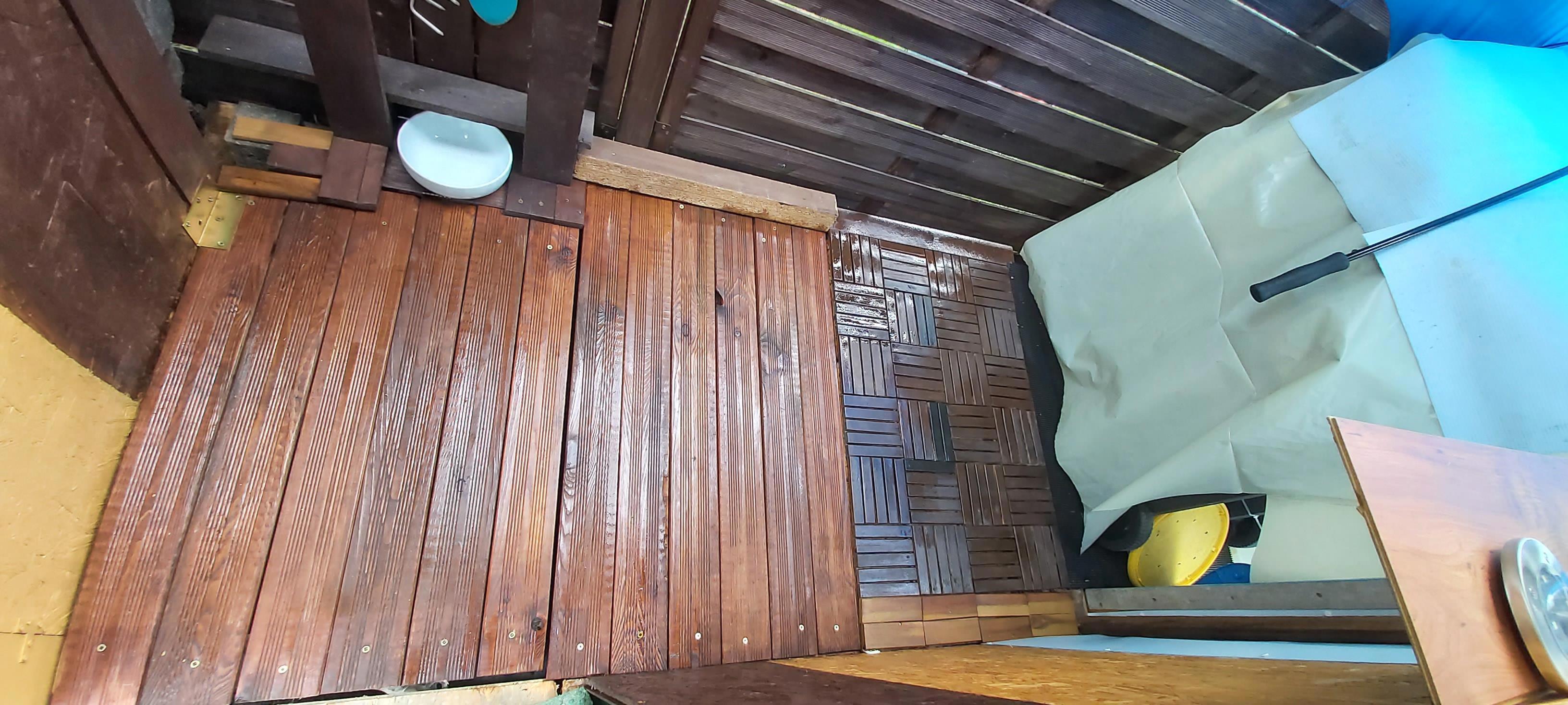 Да ничего особенного, две реечки прибила, и покрасила, заодно пол тоже.