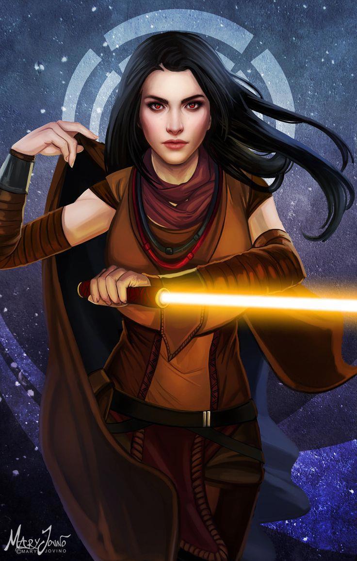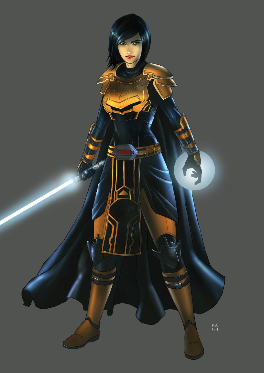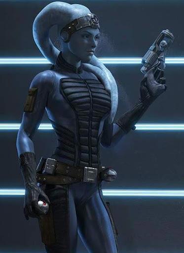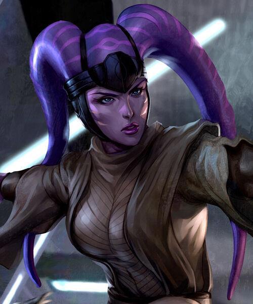 жееееелтенькая. В меру сука, в меру лапочка. Не любит световые мечи - предпочитает херачит по-македонски из бластеров. Не повезло ей только в том, что отправилась с отрядом самоубийц на Вишейта. По состоянию на конец третьего тома - R.I.P.