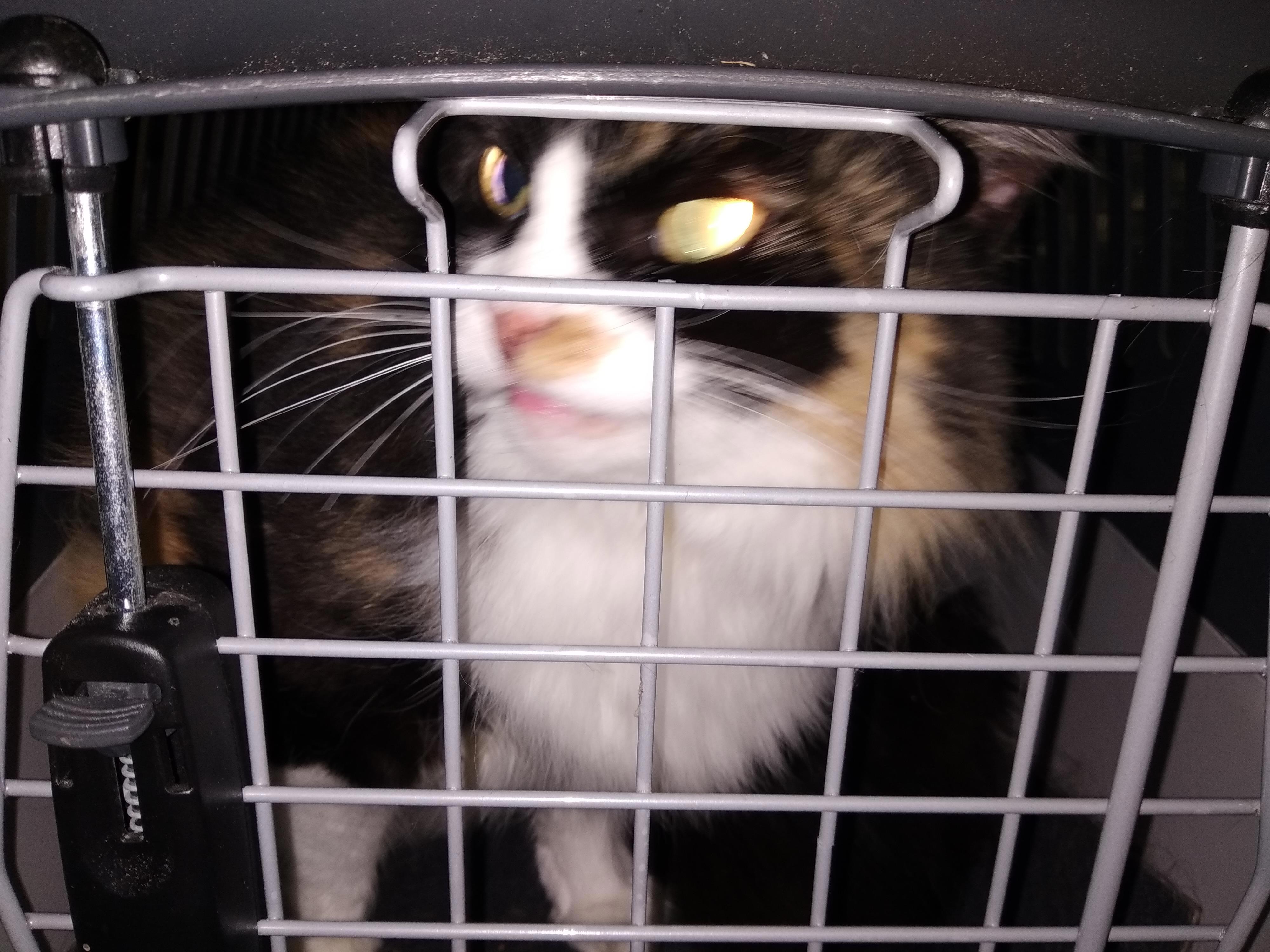 P.S. На фото видна только кошка, потому что кот чёрен как ночь. Это, кстати, бонусный лайфхак - если у вас уже есть котик с контрастной расцветкой, то можно завести второго, именно чёрного, и тогда вы сможете немного сэкономить на их перевозке на РЖД. Потому что даже если контроллёр и заглядывает в переноску, то видит только пестроту, и ему даже не приходит в голову, что вот этот комок тьмы, затаившейся в углу - ещё один кот. ) А если завести трёх чёрных котов...
