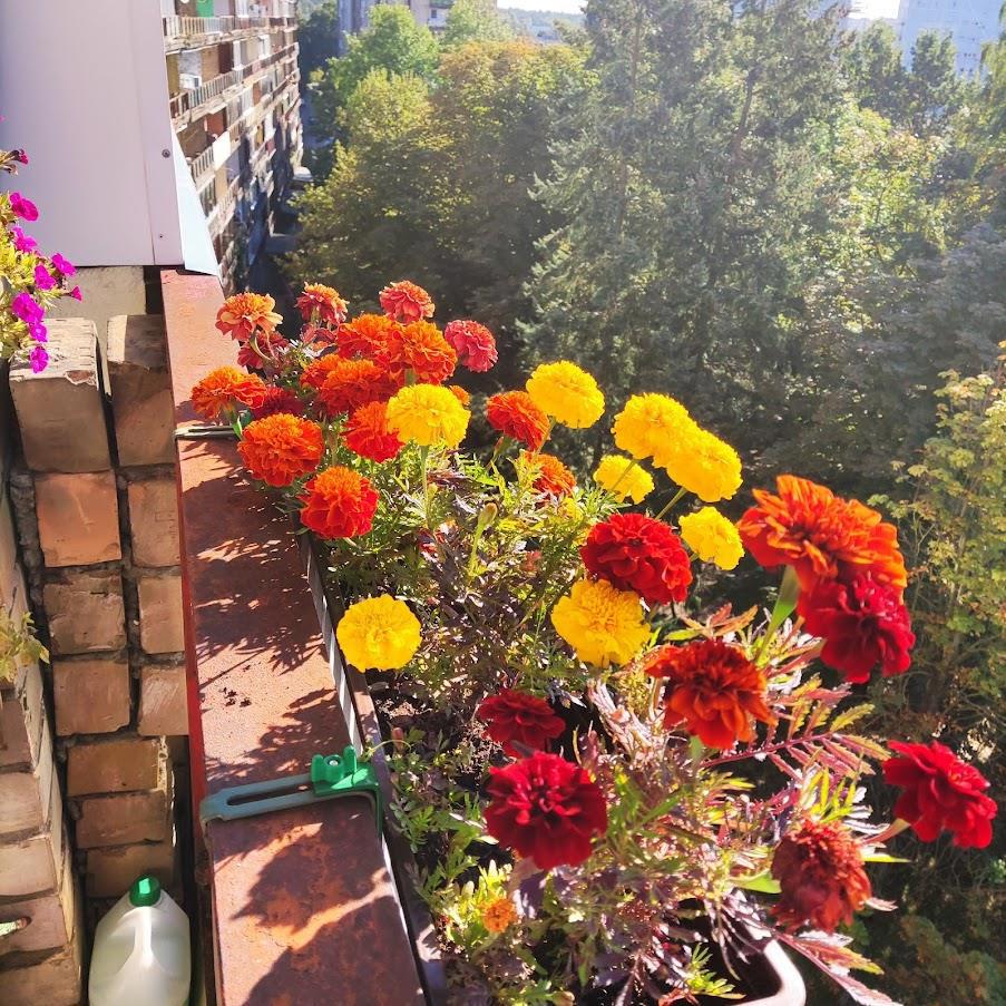 Ну и бархатцы-молодцы, тоже цветут вовсю.