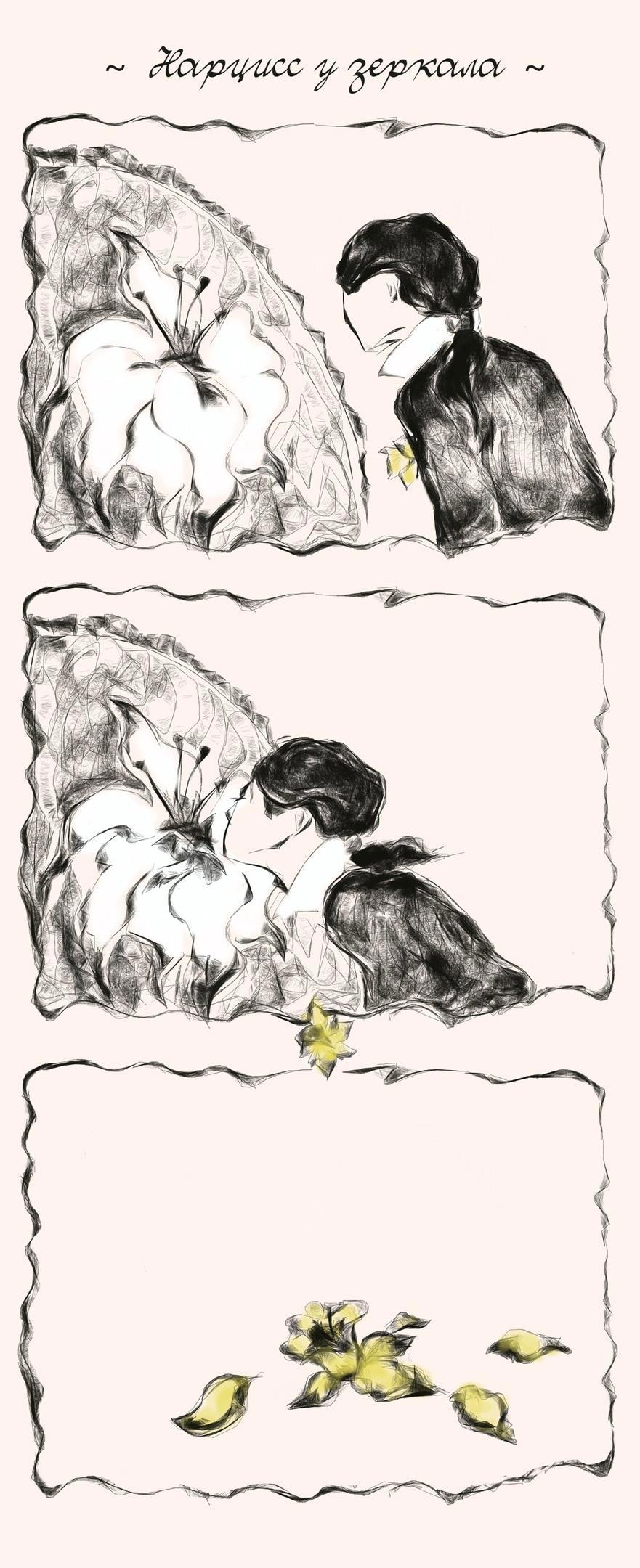 Этот арт «Нарцисс у зеркала» напомнил мне одно моё стихотворение, посвященное Нарциссу