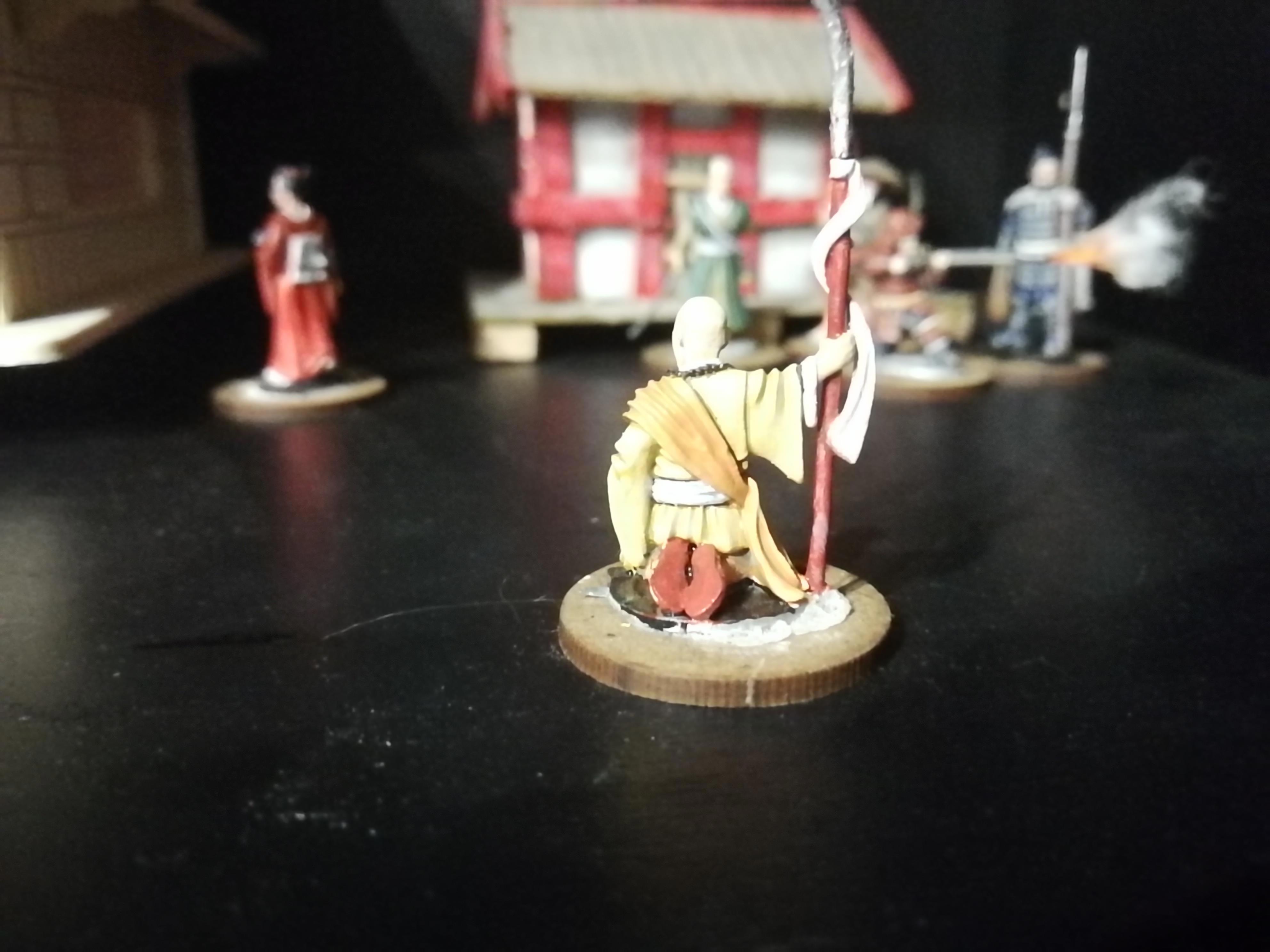 Бородатый асигару с яри (это не яри, яри это пика, я не знаю, как японцы называли копьё) - дезертир, и его я решил покрасить в цвета клана Отомо. Видимо, парню не понравилось служить дайме, запятнавшему себя торговлей с грязными гайдзинами, а именно - португальцами. Неудивительно, что сей господин решил дезертирствовать - иезуиты-с бывают весьма и весьма настойчивы. И надоедливы.