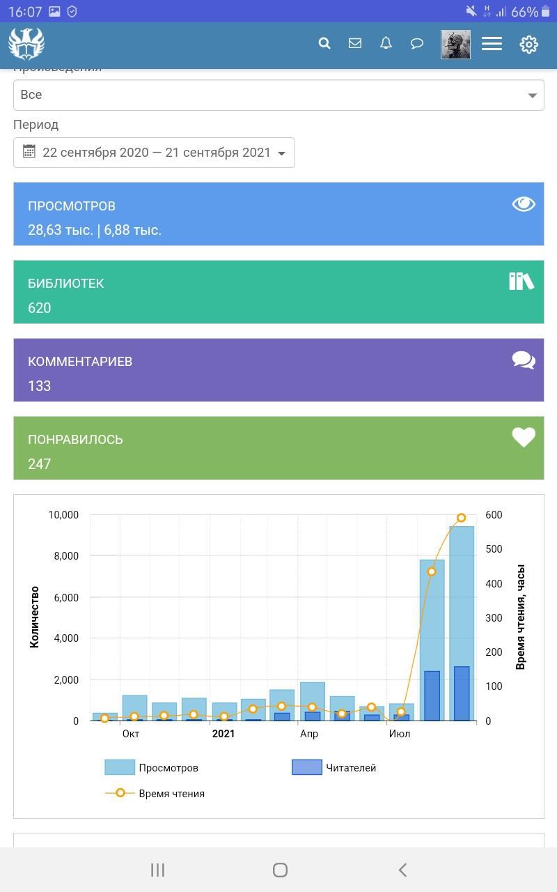 | 11710 / 458 | Просмотры и читатели | 28630 / 6880 | 40340 / ~7340 |