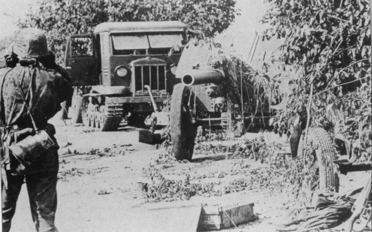 В третьих, и, скорее всего, именно это сыграло главную роль, 3 июля 1942 года было, мягко говоря не той датой, которую командование 8-й мсд НКВД и выше хотело бы лишний раз вспоминать. Фактически получилось так, что при отходе частей дивизии 10-й гап был вынужден самостоятельно прикрывать подходы к переправе, а затем и переправляться под огнем наседавших немцев. И если некоторым батареям хоть и с потерями, но удалось переправиться на другой берег, то в 5-й, выйдя к переправе после боя с танками, расчеты обнаружили, что переправа занята противником. При попытке перетащить гаубицы через реку трактора "зайдя в воду, вышли из строя".