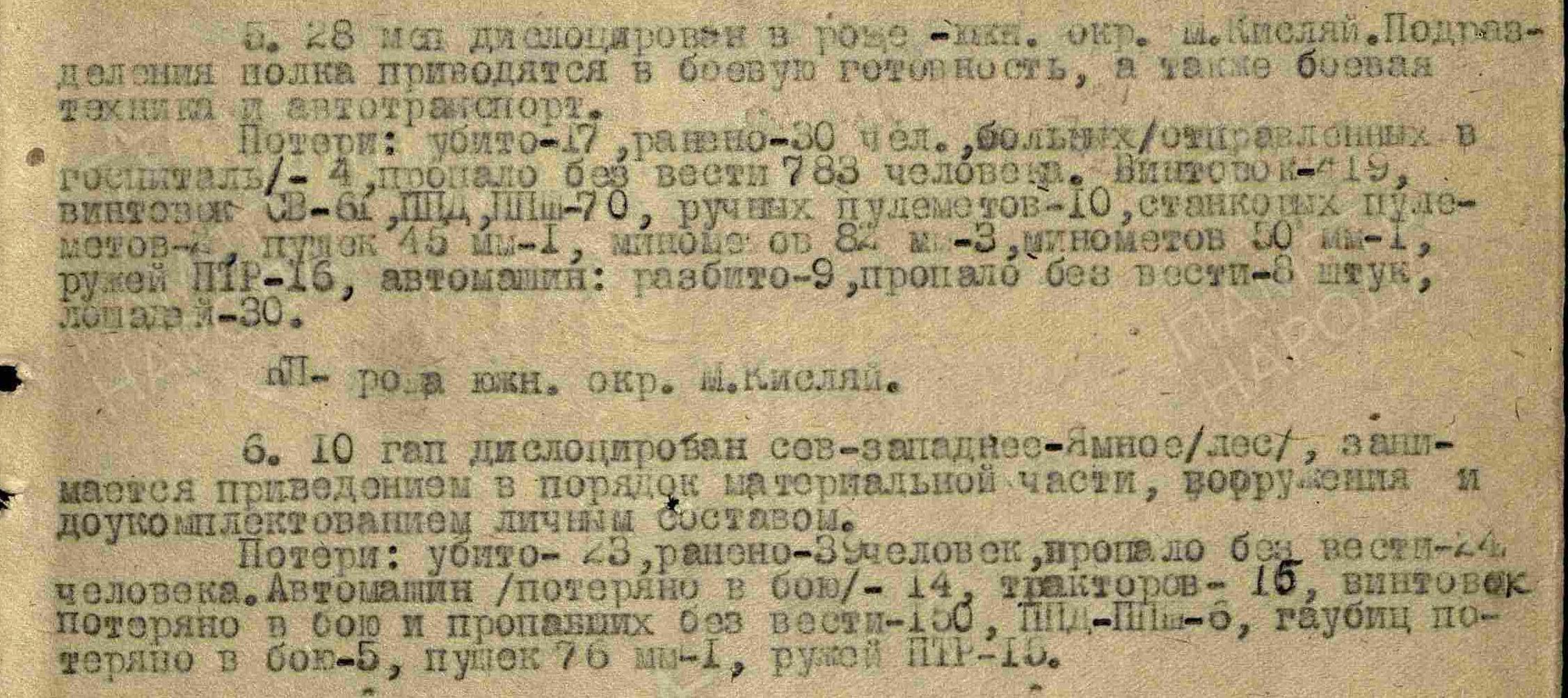 "Без вести пропавшие" при отступлении продолжали возвращаться больше недели – так, 12 июля в полк вернулось "тридцать человек из них три средних командира". Ну и список потерянной матчасти да, внушает.