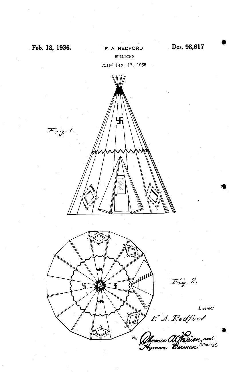 Чертеж будущего «вигвама». 36-й год, солярный символ свастики еще не под запретом.