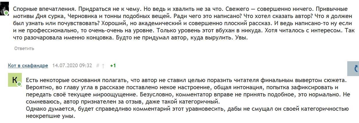 Итого, ещё раз: участвовать в конкурсе можно, это опыт и это литературный движЪ, какой ни есть, нужно пробовать все пути. Просто надо учитывать, что успех/неуспех там – это больше результат стечения случайных факторов, чем показатель уровня вашего рассказа.