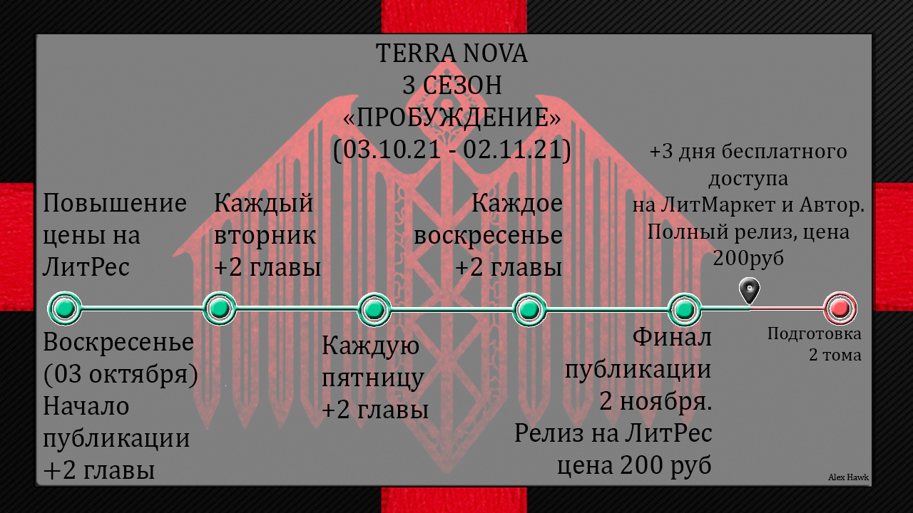 Прямо сейчас вы можете приобрести книгу TERRA NOVA на ЛитРес за 69,90р. С 3 октября цена изменится и повысится до ~99р. А после финального релиза поднимется до ~200р.
