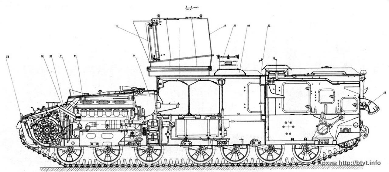 В качестве основы для него использовали самоходное орудие СУ-100П. В него установили твёрдотельный лазер и для его питания энергией дополнительный дизельгенератор мощностью 400 лс. Вот схема, на которой показано общее устройство этой машины: