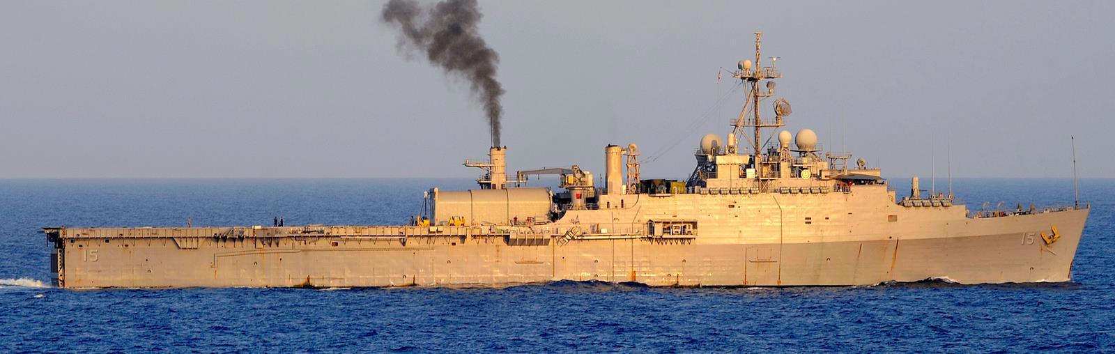 Следующей «жертвой» испытателей в 2017 году стал десантный транспортник «USS Ponce». Вот такой: