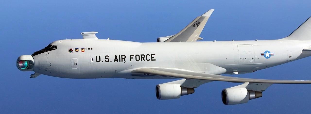 А они тоже не сидели сложа руки. Военные показывали своим гражданским начальникам картинки со страшной «советской угрозой» в виде лазерных комплексов и требовали денег. Особенно всё активизировалось во времена Рейгана с его «Звёздными войнами». На полигонах гремели ядерные взрывы – американцы всерьёз пытались сделать «лазеры с ядерной накачкой». В принципе это было логично – а где ещё взять запредельную мощность? Однако, зря потратили ядерные боеприпасы, потратили кучу денег (200 миллиардов долларов) и накрыли окрестности продуктами распада – идея оказалась провальной. Были и другие затратные и очень затратные эксперименты с лазерным оружием. Ещё, например, построили по программе ABL (Airborne Laser) на базе здоровенного «Boeing 747» летающий лазер (13 миллиардов долларов):