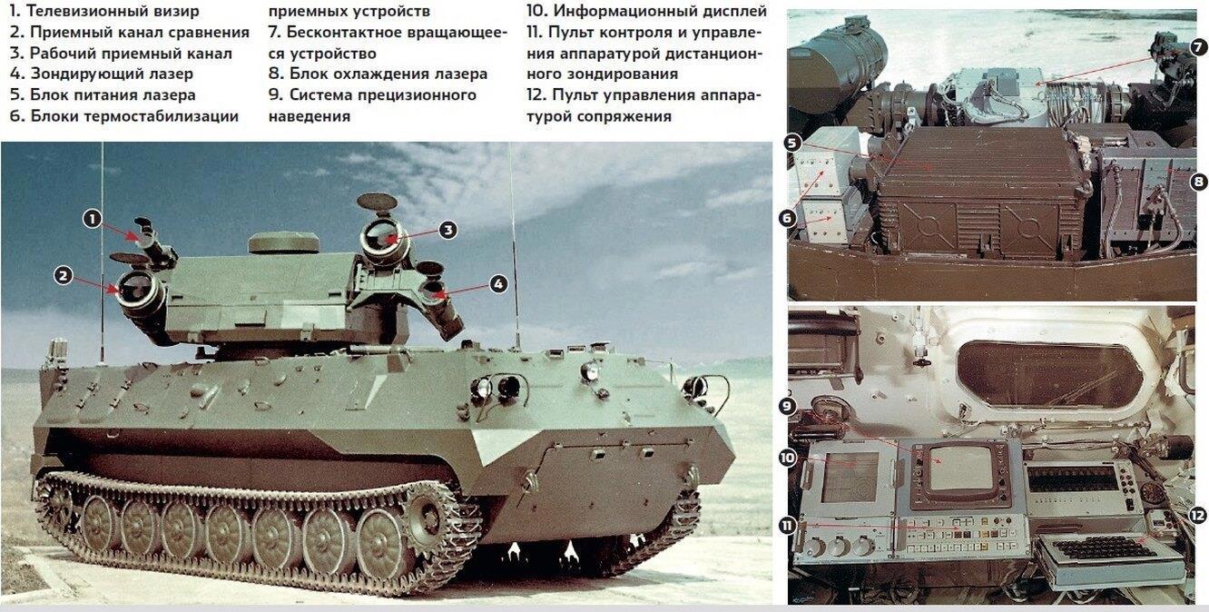 Получилась боевая машина, предназначенная для ослепления систем наблюдения и прицеливания тяжёлых вооружений противника. Похожая система, кстати, но значительно более меньшей мощности была через много лет, в 1996 году, использована американцами в своей лазерной установке для разминирования ZEUS, смонтированная на шасси военного внедорожника: