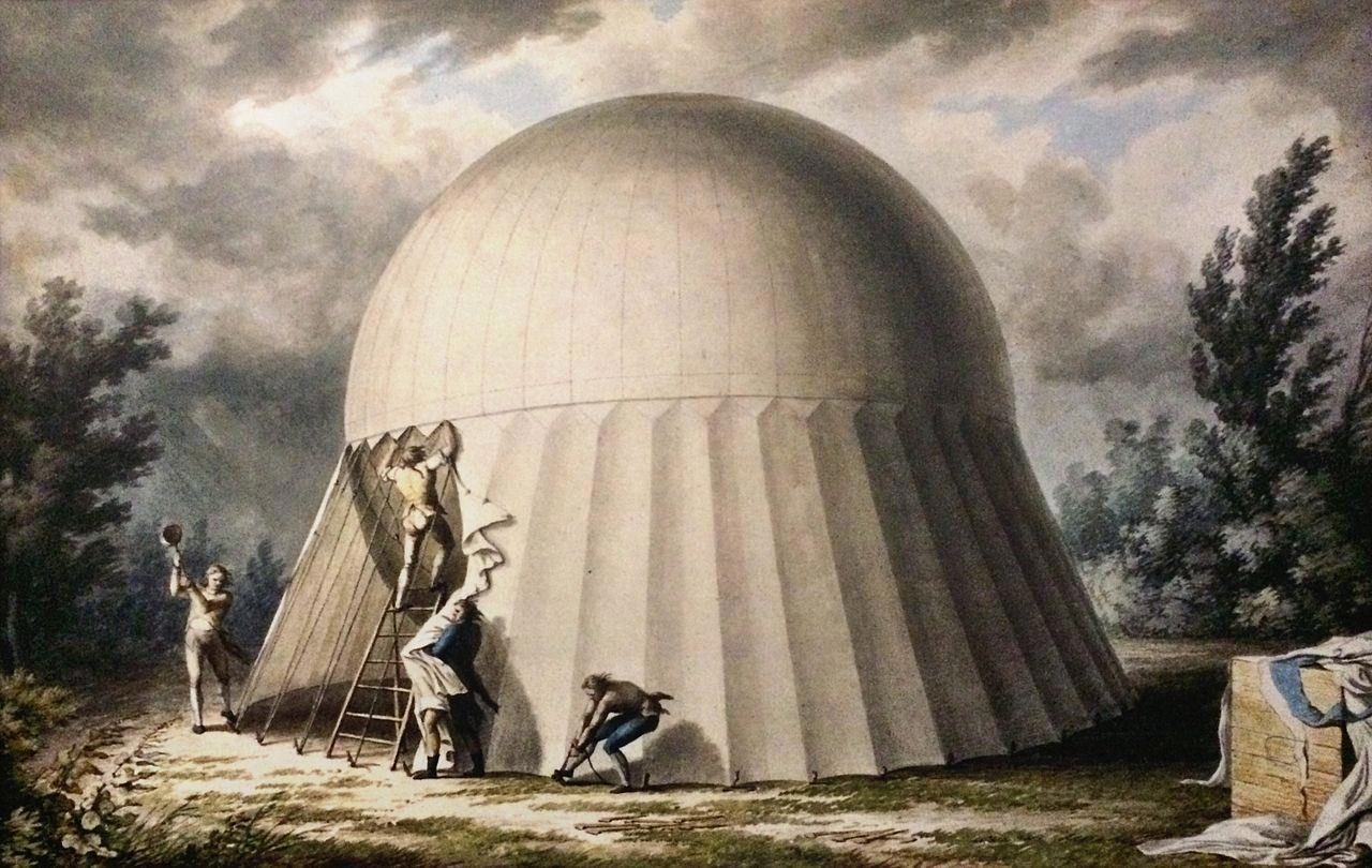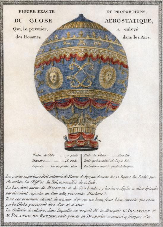 Изображение и описание воздушного шара братьев Монгольфье, сделанное в 1786 году.